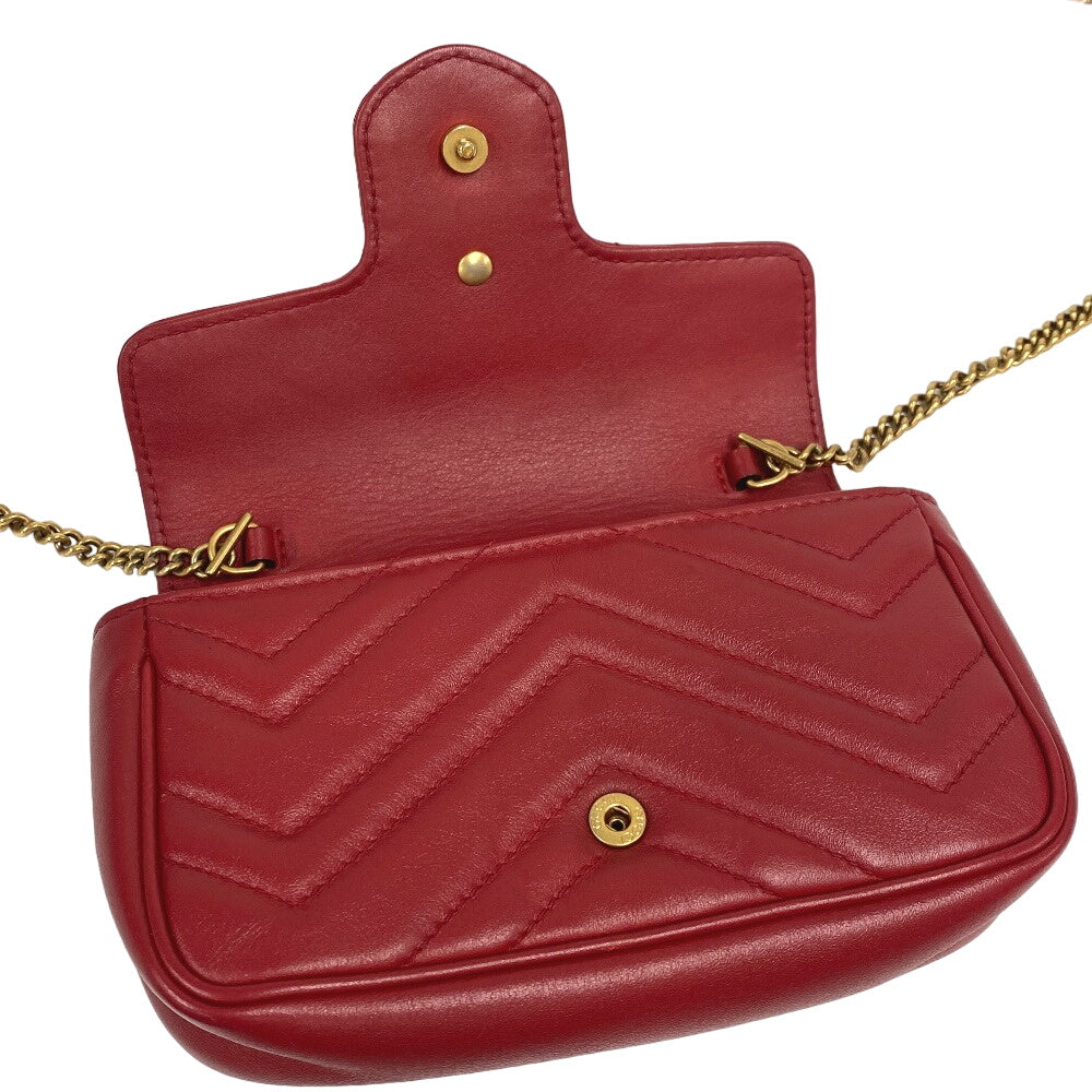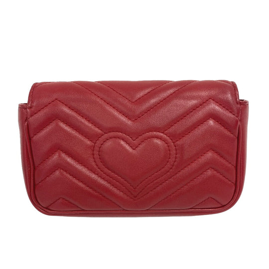 GUCCI Shoulder Bag 476433 leather Red ChainShoulder GG Marmont Women Used Authentic