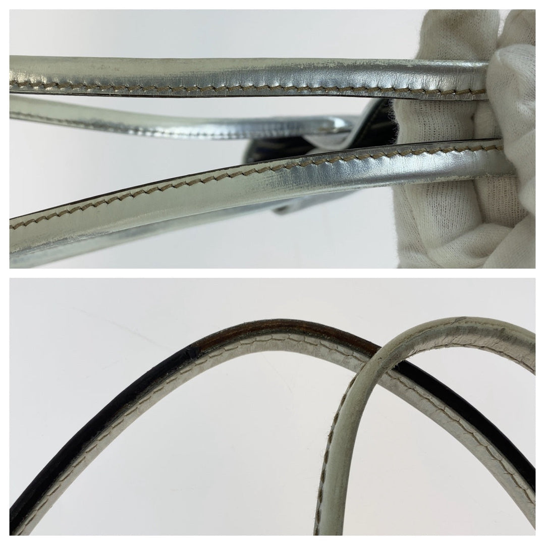 GUCCI Tote Bag 169945 GG canvas, leather Silver Metal Tote Bag Shoulder Bag Interlocking Newbrit Women Used Authentic