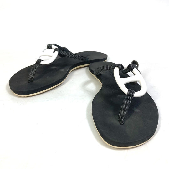 HERMES Sandals rubber black Chene Dunkle Caranella Women 37 Used Authentic