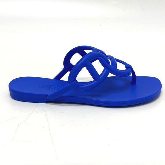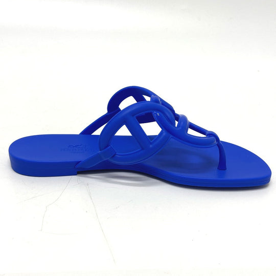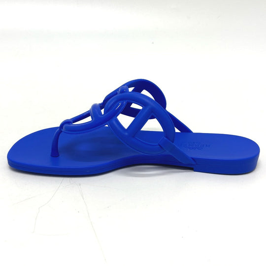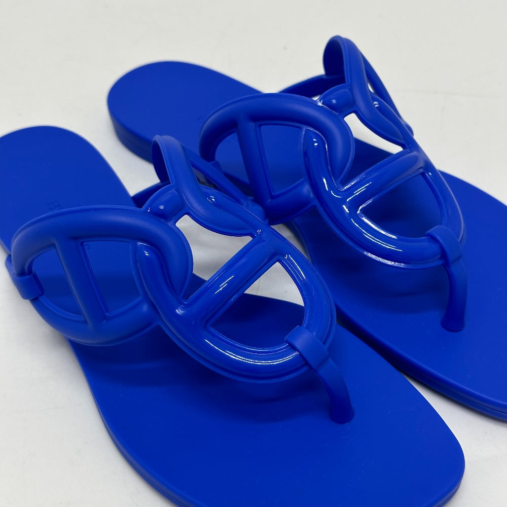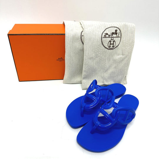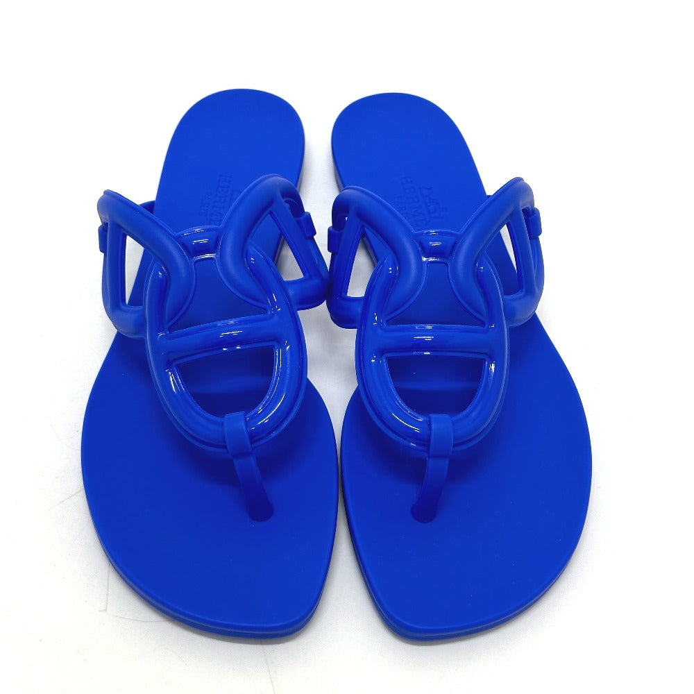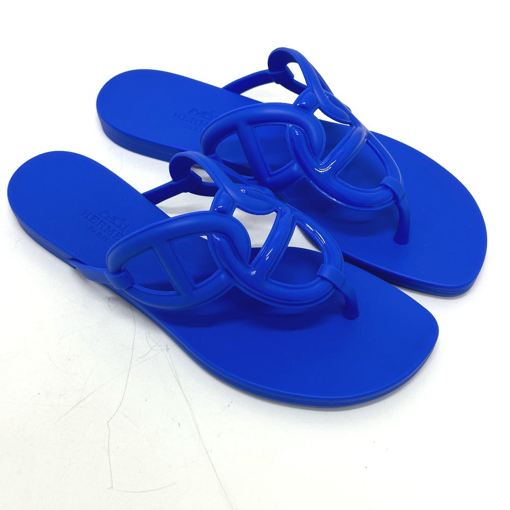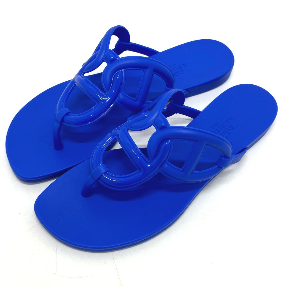 HERMES Sandals rubber blue Flat thong shoes Chene Dunkle Egeri Women 35 Used Authentic