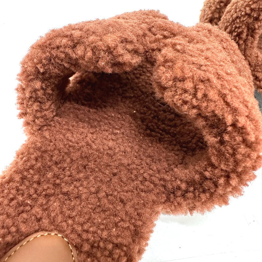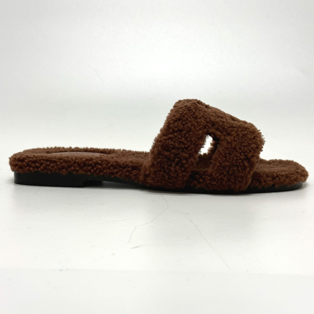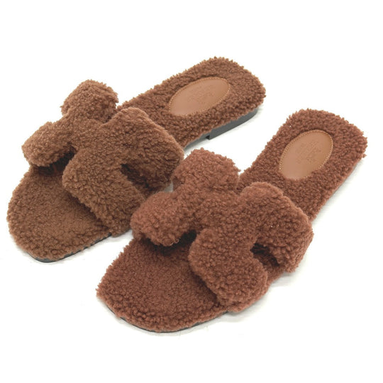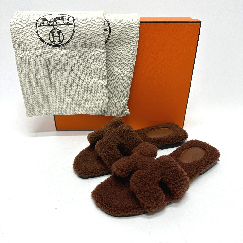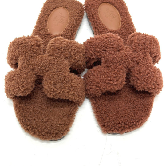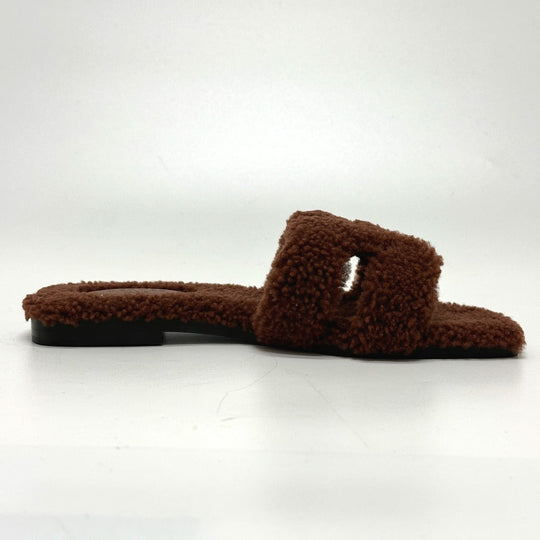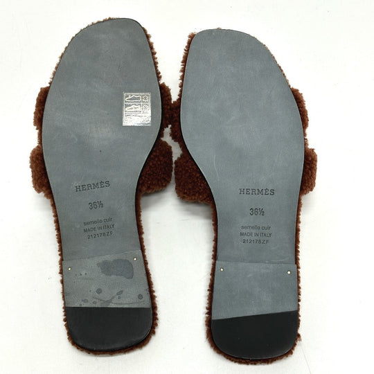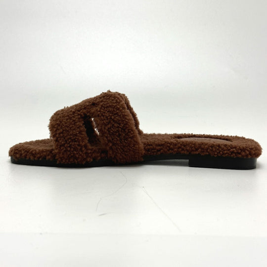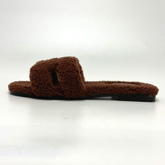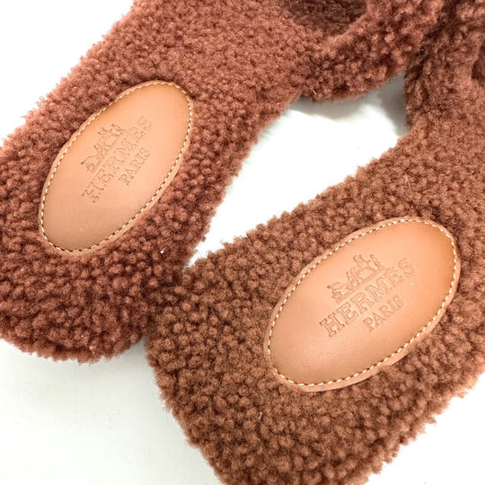 HERMES Sandals Sheepskin Brown Oran Women 36.5 Used Authentic