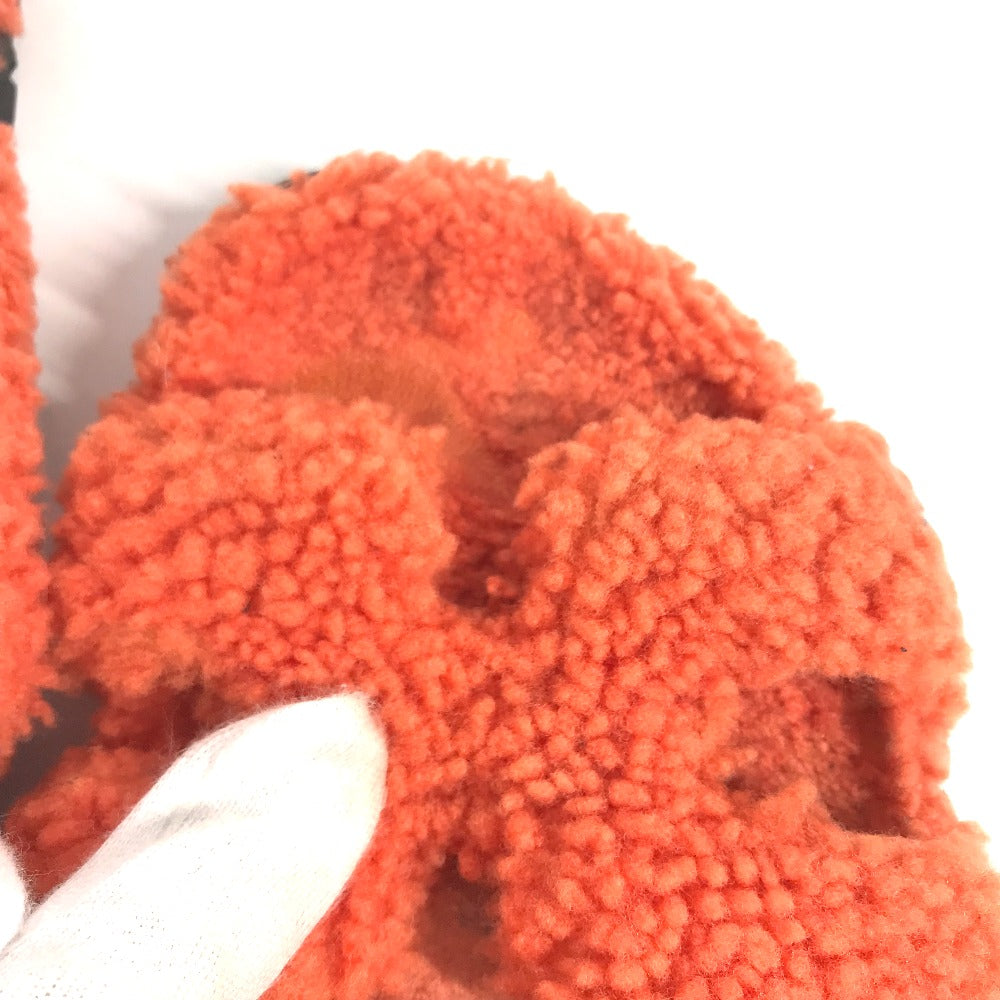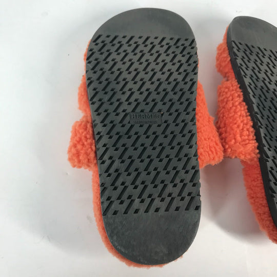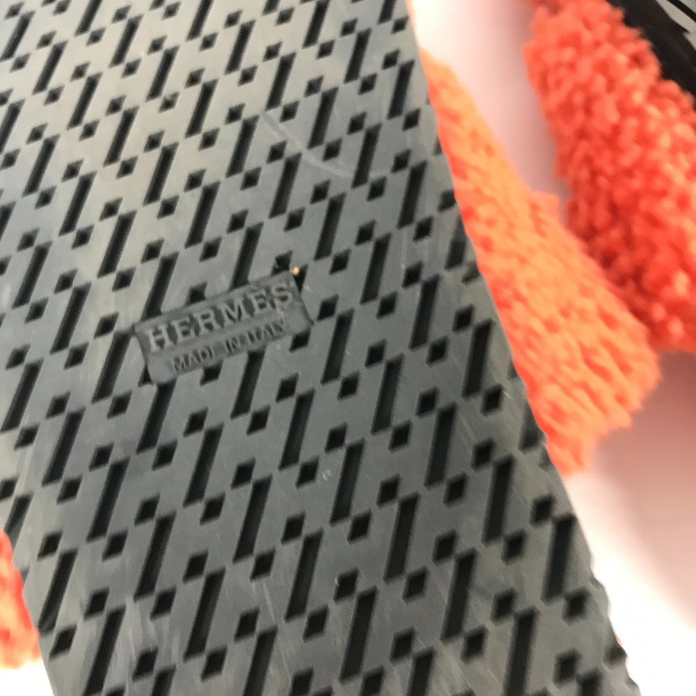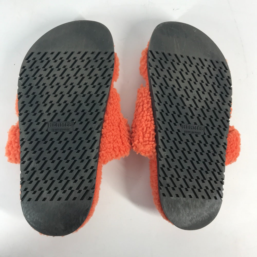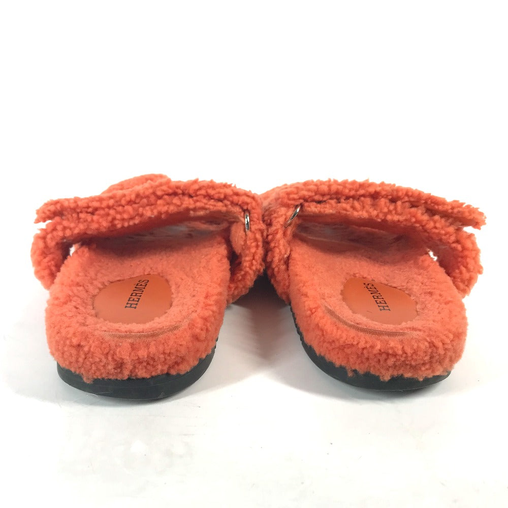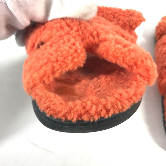 HERMES Sandals Sheepskin, Mouton Orange Fluffy H logo shoes flats Sandals "Chypre" Women 36 Used Authentic