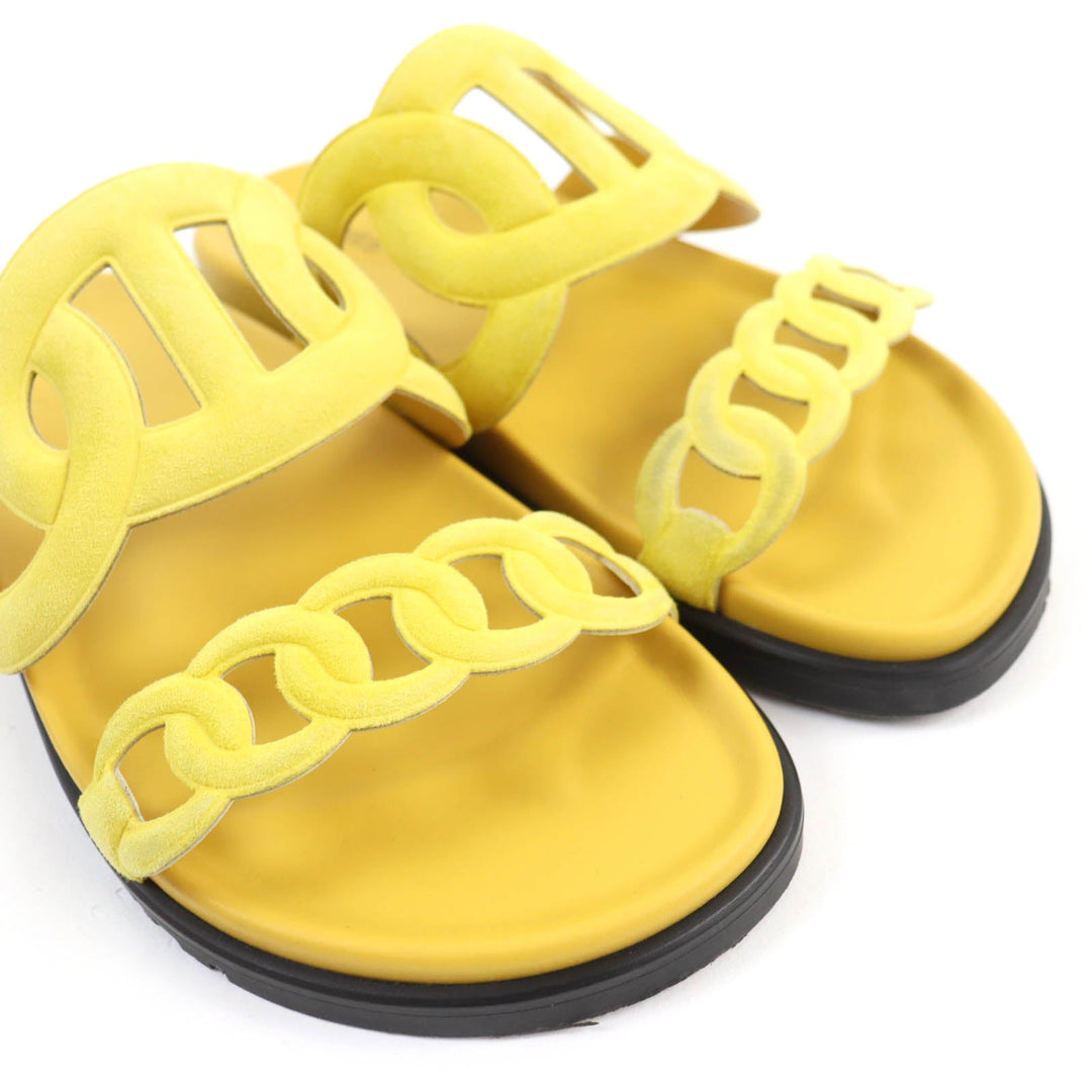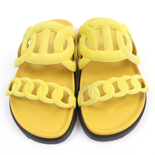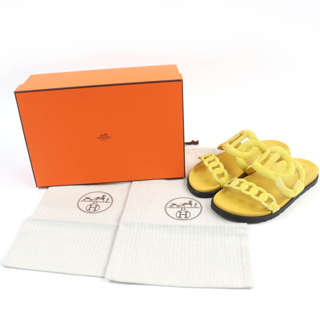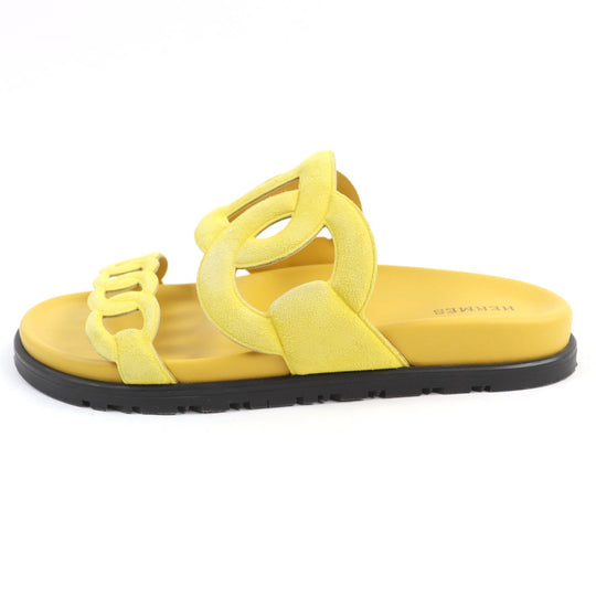 HERMES Sandals Suede leather yellow extra Women 38 Used Authentic