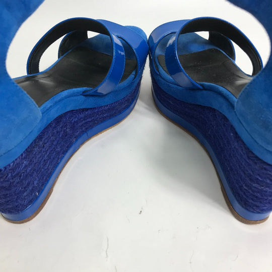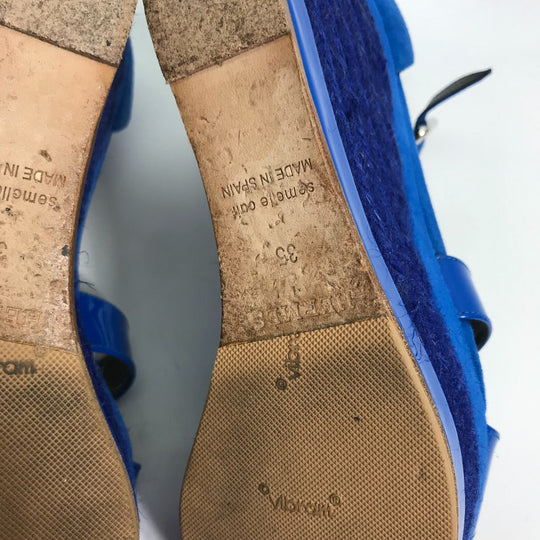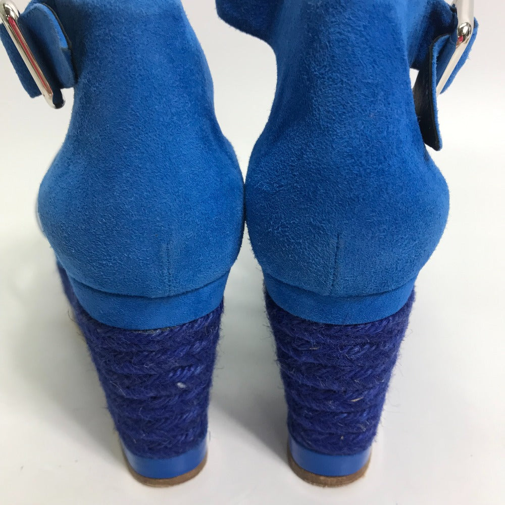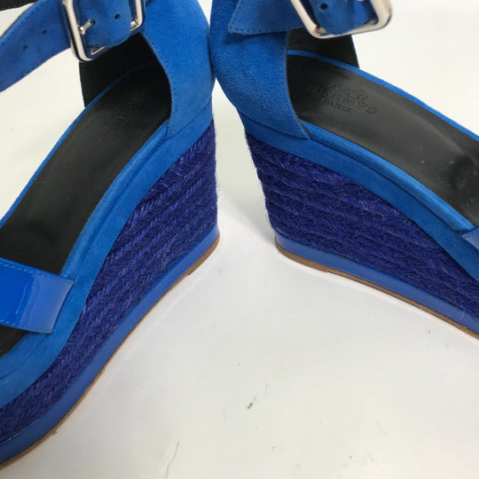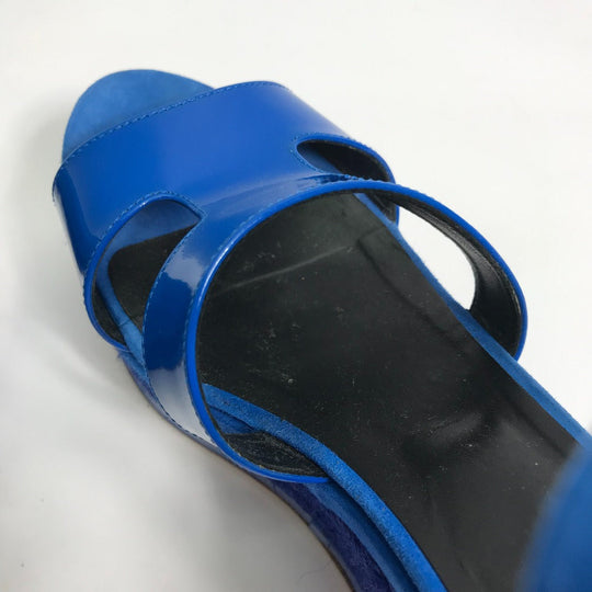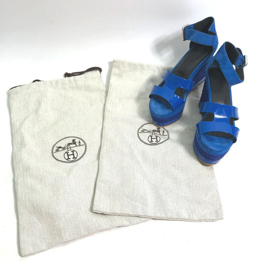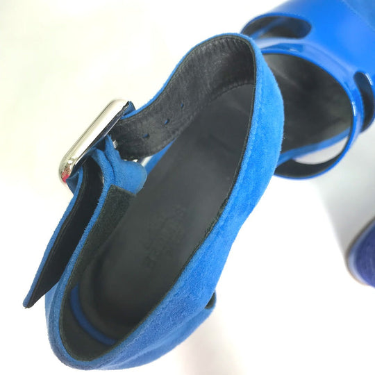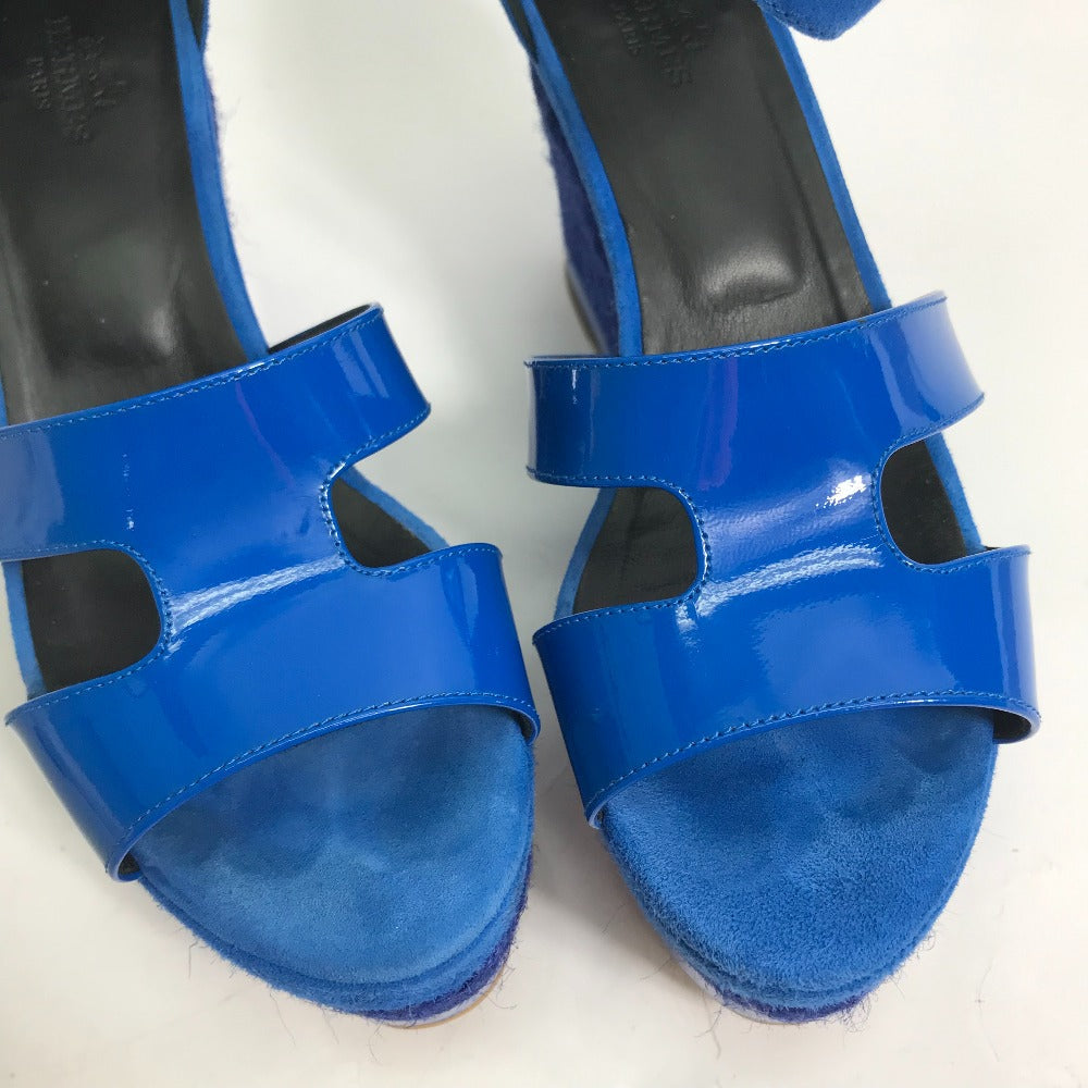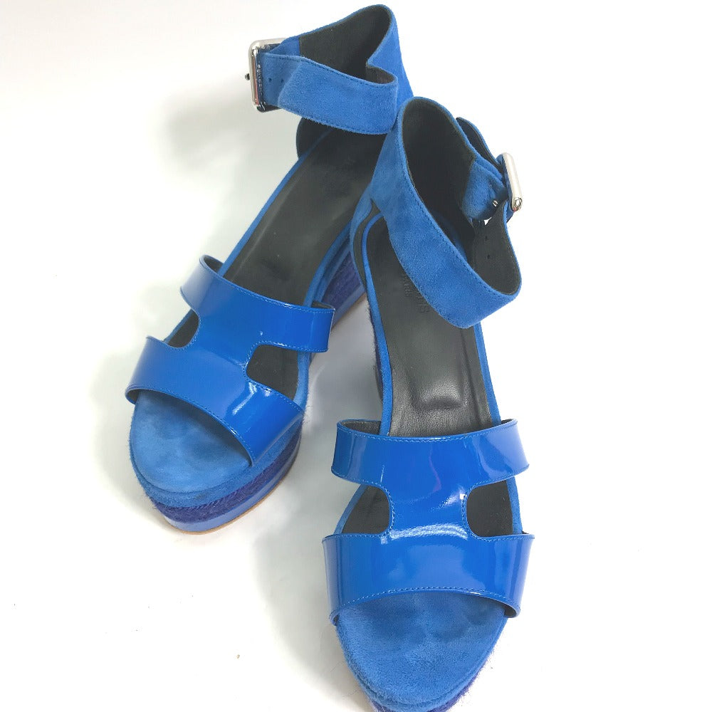 HERMES Sandals Suede, Patent Leather blue heel belt Elda Women 35 Used Authentic