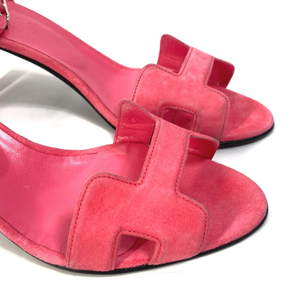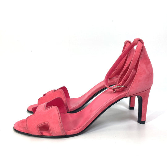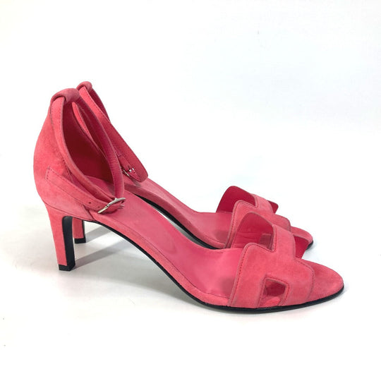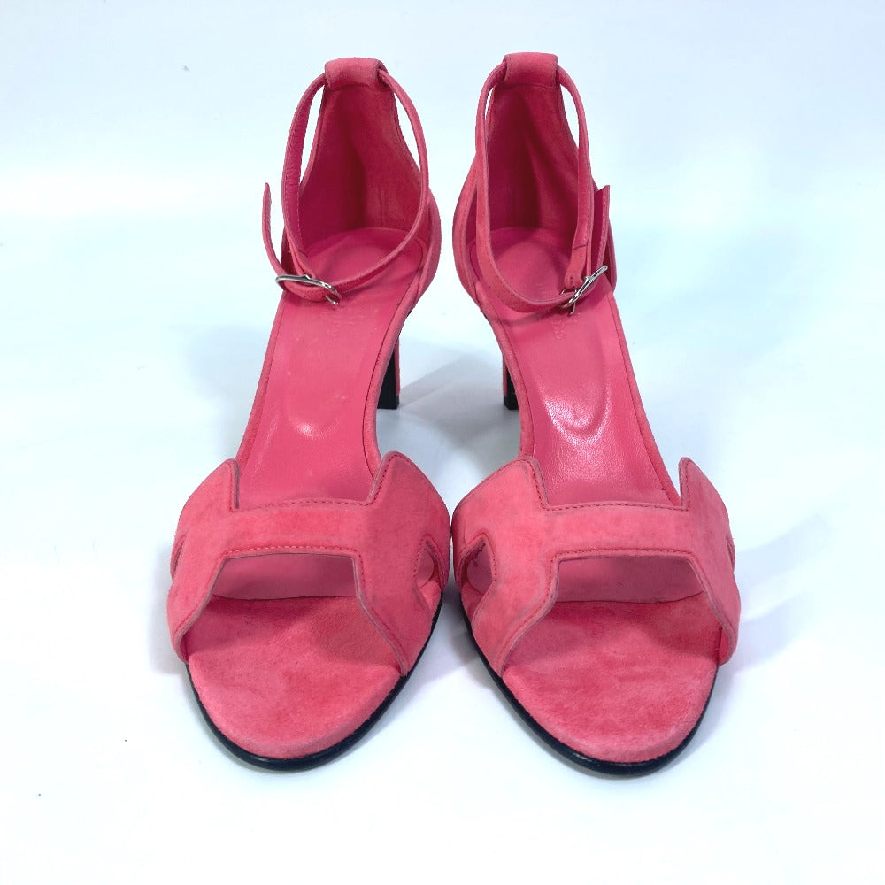 HERMES Sandals suede pink shoes Premiere 38 1/2