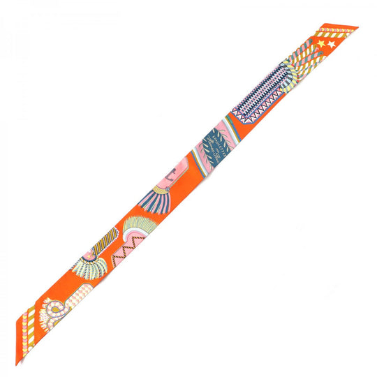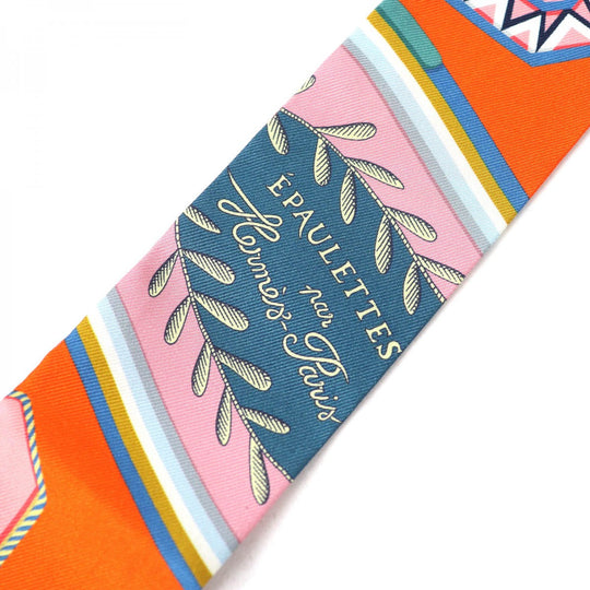 HERMES scarf 063983S silk ORENGE/VERT/JAUNE Twilly EPAULETTES DE GALA Ceremonial epaulettes