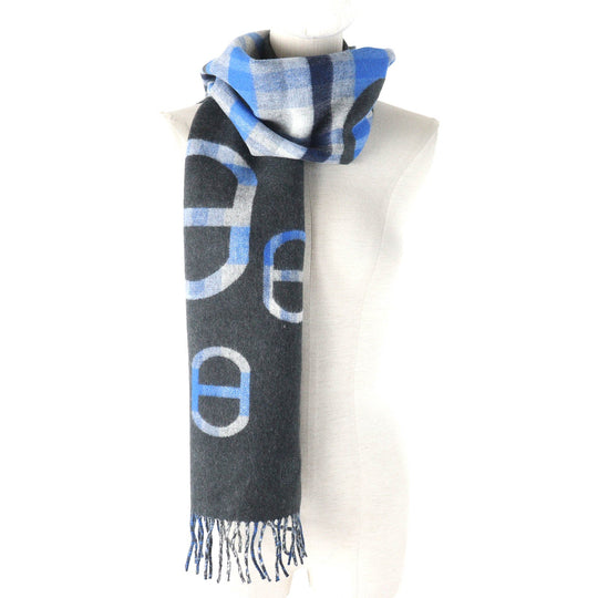 HERMES Scarf Main: 100% cashmere Anthracite/Blue tartan maillon Women Used Authentic