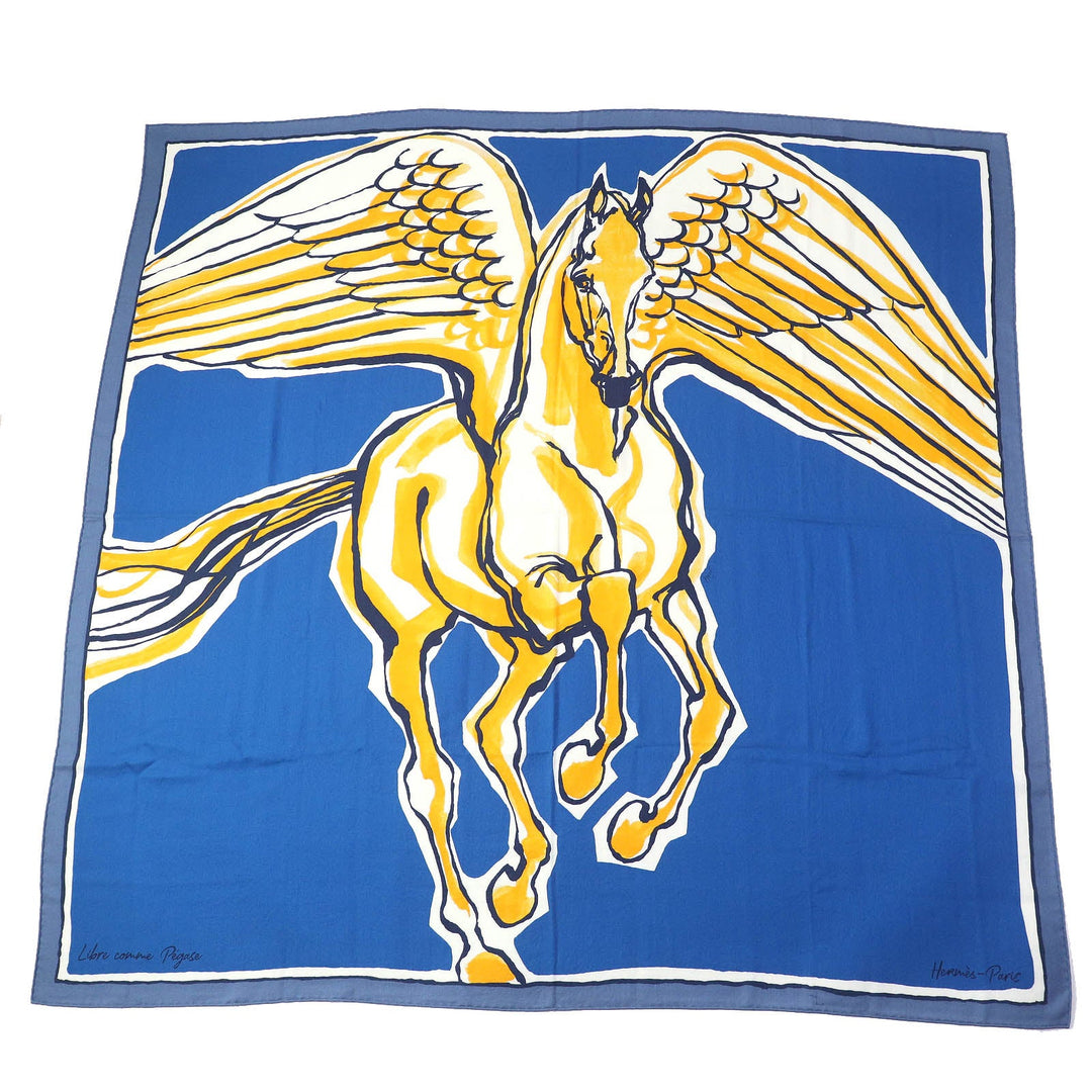 HERMES scarf Main: 70% cashmere, Main: 30% silk blue Libre Comme Pegase Women Used Authentic