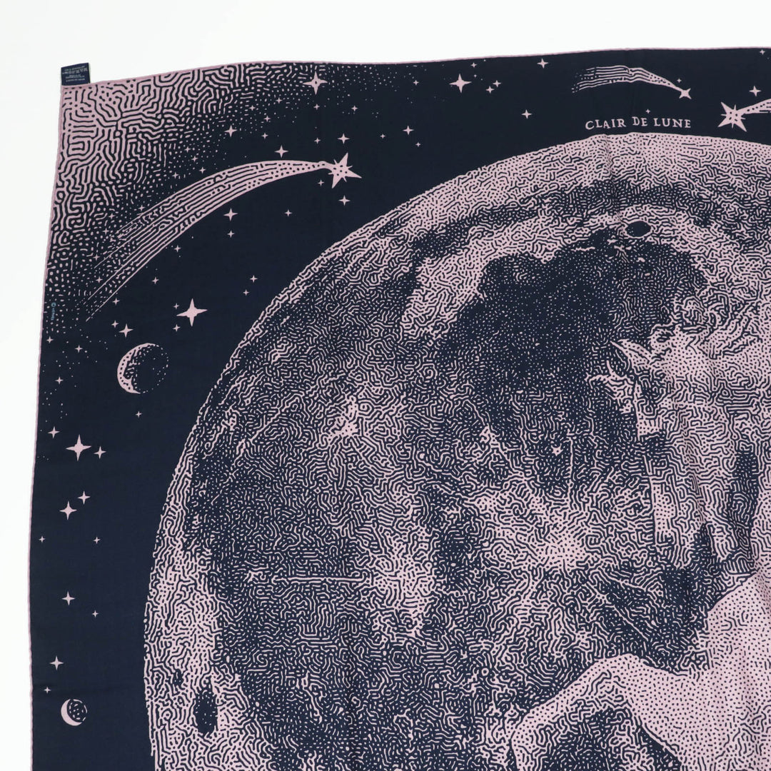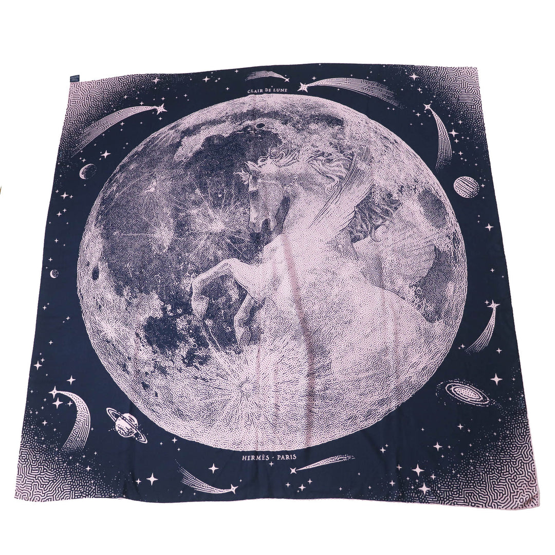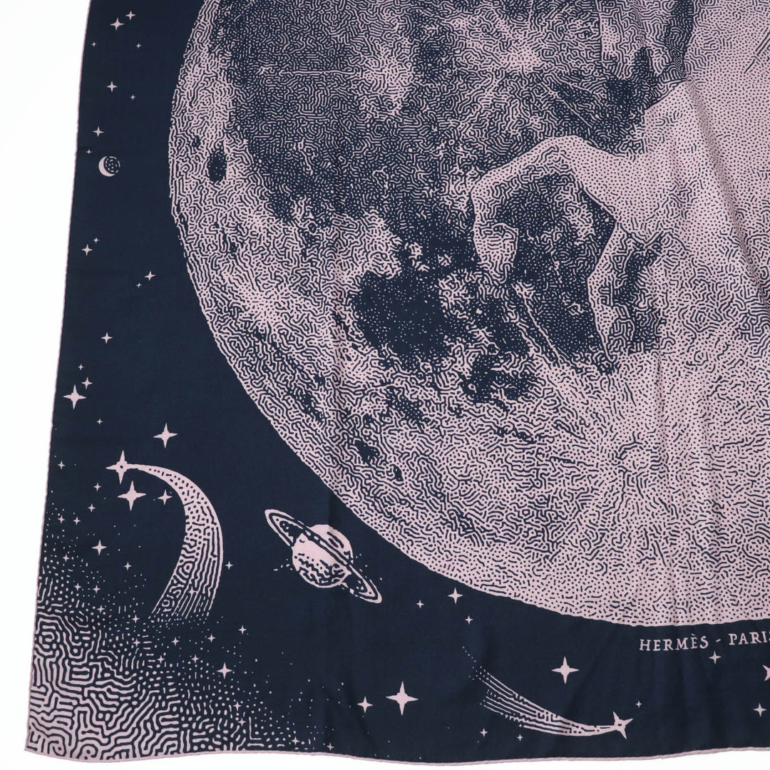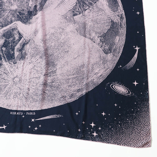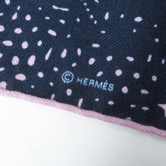 HERMES scarf cashmere Navy pink Caregean CLAIR DE LUNE