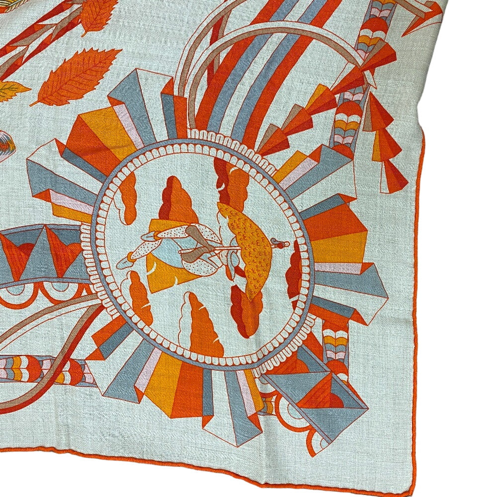 HERMES scarf Cashmere, Silk Orange L'OMBRELLE MAGIQUE Magic wand umbrella Caregean Women 140 Used Authentic
