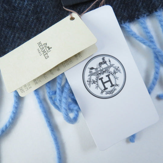 HERMES Scarf Main: 100% cashmere Marine Ciel Chene Dunkle Optic Women Used Authentic