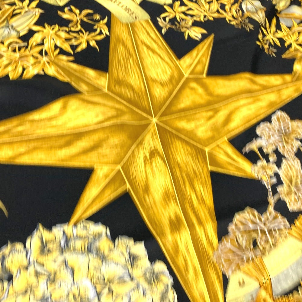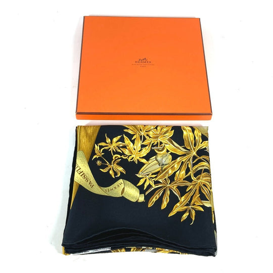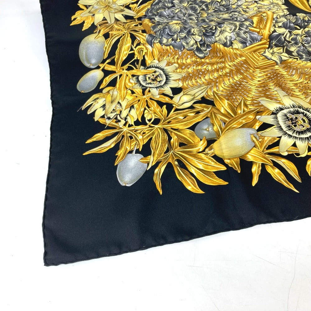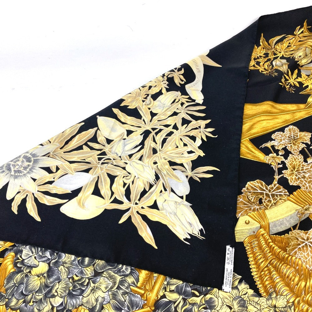 HERMES scarf silk black Carre90 PASSIFLORES Passion Flower Women Used Authentic