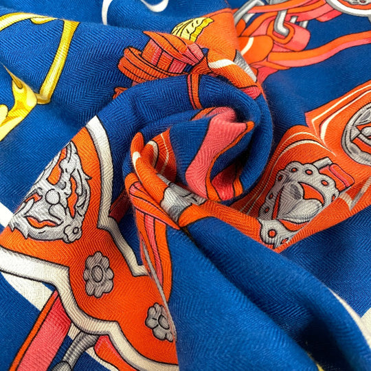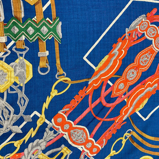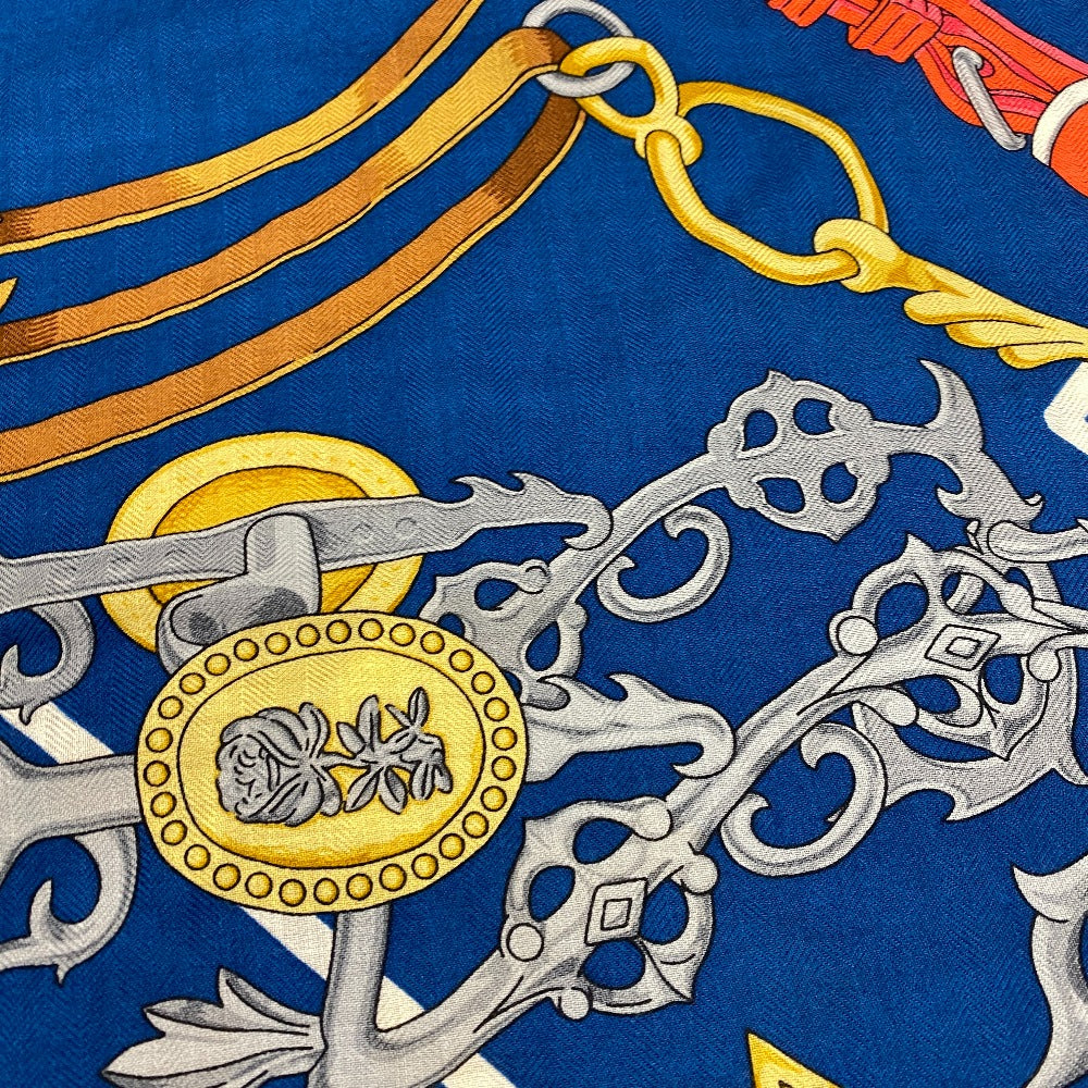 HERMES scarf silk blue Brides et Destin Triangle Jean Women Used Authentic