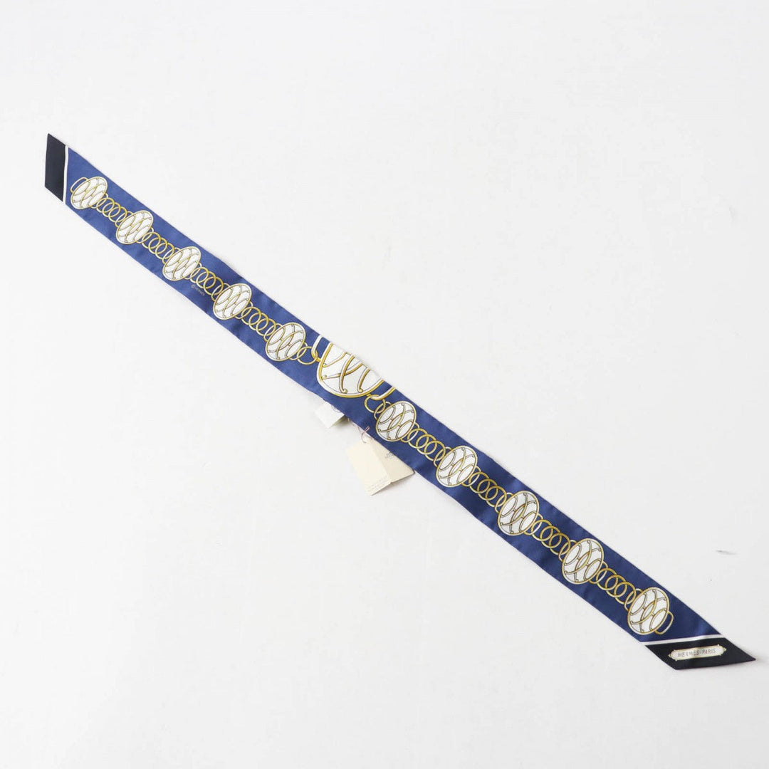 HERMES scarf Main: 100% silk Marine/Black/Gold Twilly Lift Profile Lift Profile Women Used Authentic