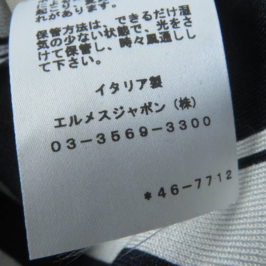 HERMES Short sleeve knit 4E2654D6 silk Navy white Knit jacquard chaos Women 42 Used Authentic