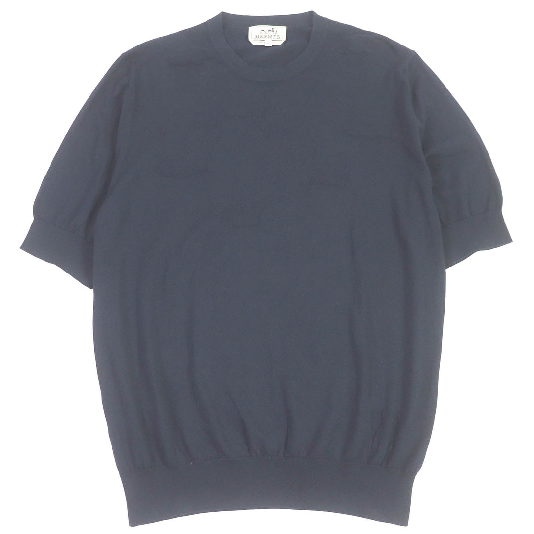 HERMES Short sleeve knit Main: 90% cotton, Main: 10% cashmere Navy mens L Used Authentic