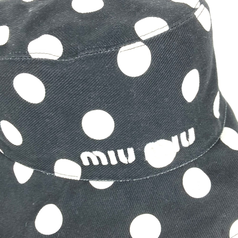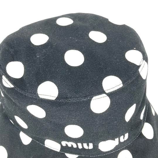 MIUMIU hat 5HC196 cotton black logo dot polka dot S
