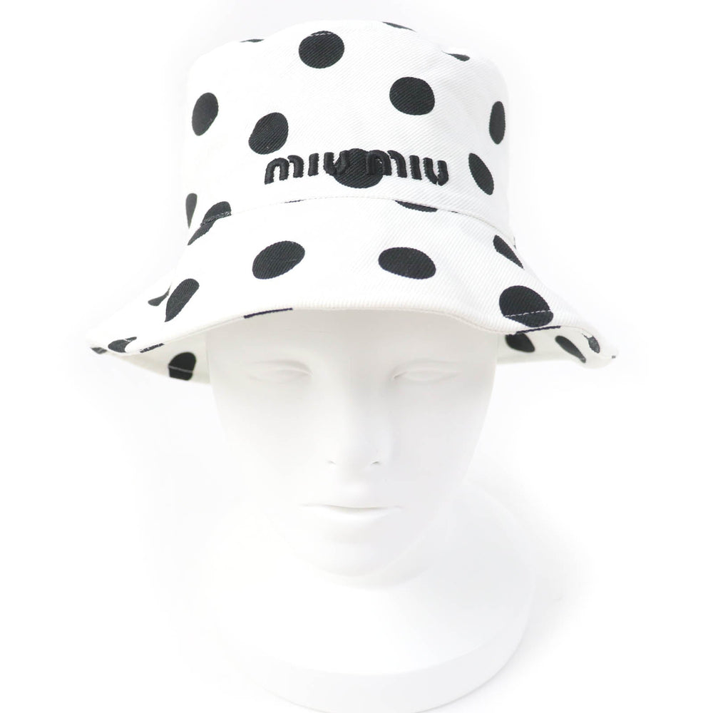 MIUMIU hat 5HC196 Main: 100% cotton, Lining: 57% polyester, Lining: 43% acetate White black Women Used Authentic