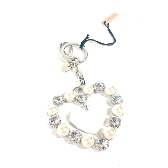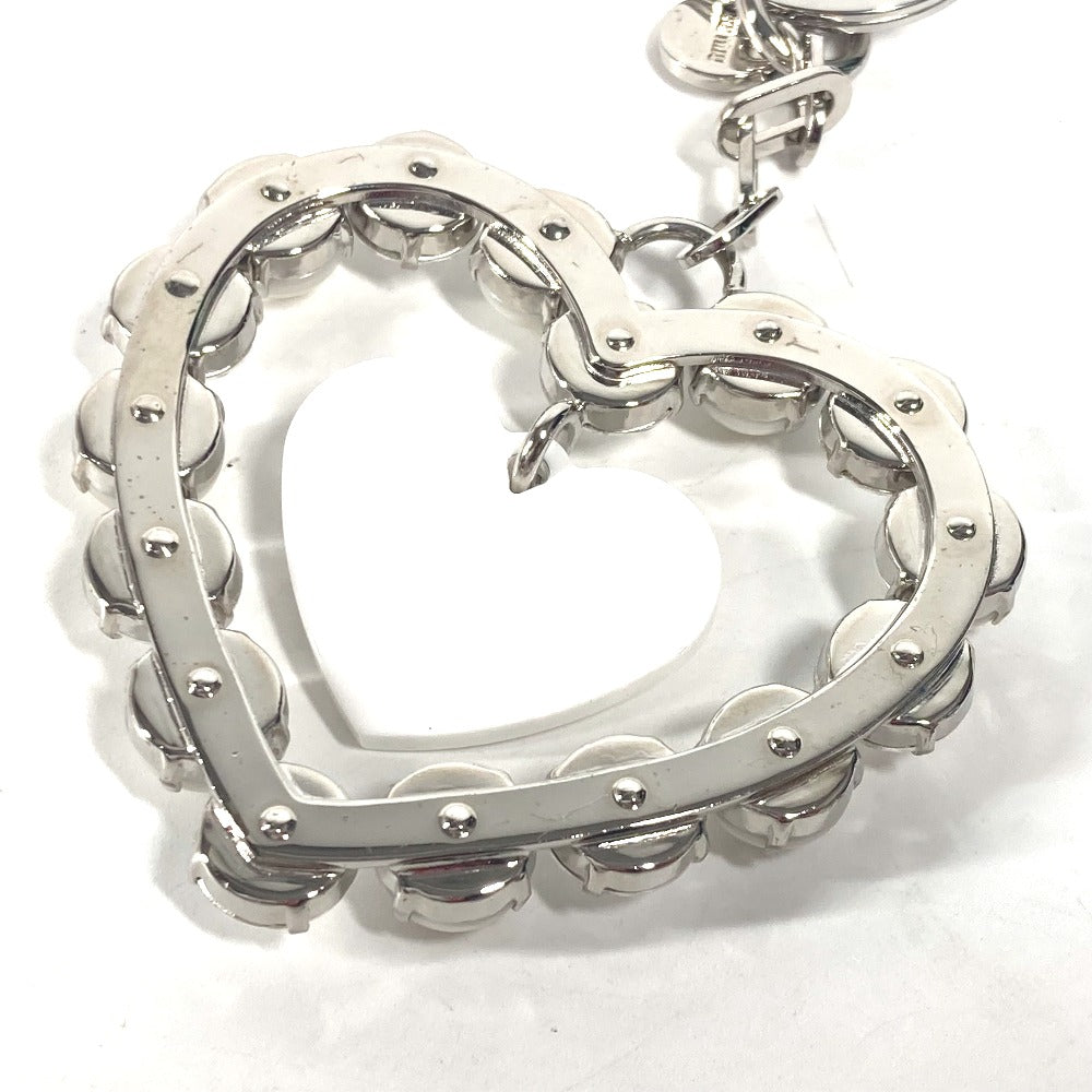 MIUMIU key ring metal Silver Rhinestone heart Women Used Authentic