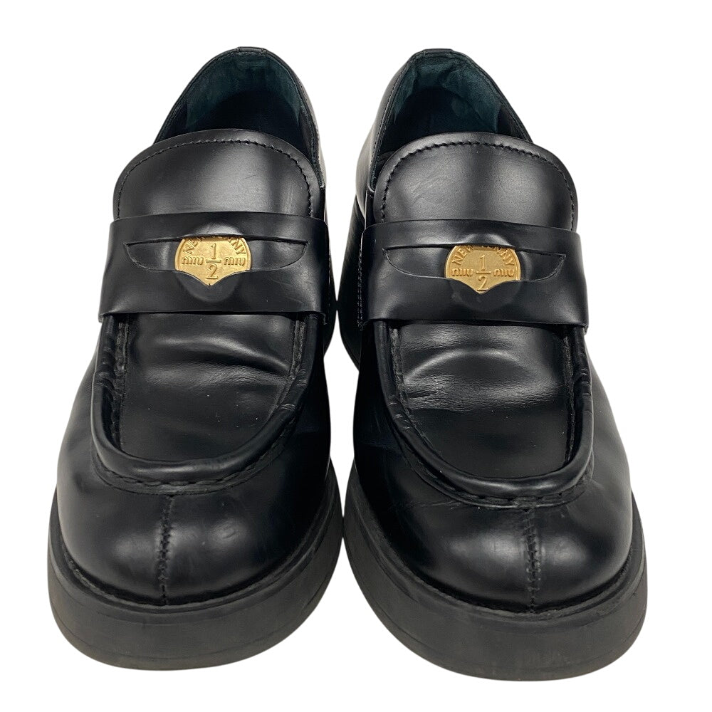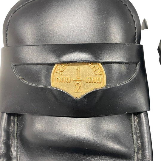 MIUMIU loafers 5D926D leather black Penny loafers coin Women 38 Used Authentic
