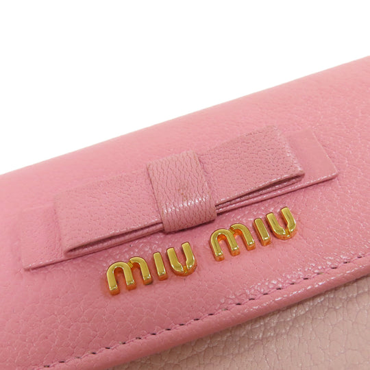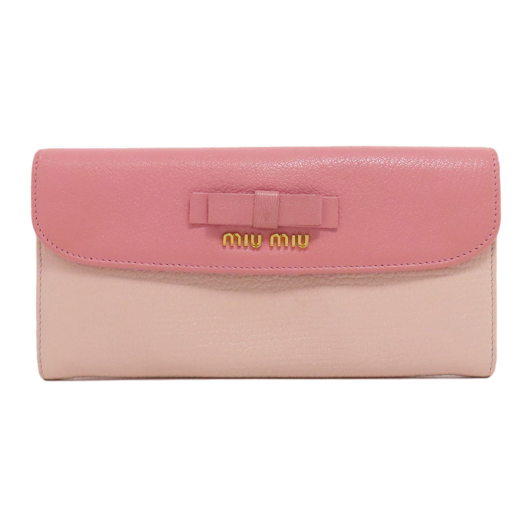 MIUMIU Long Wallet Purse leather pink logo ribbon Women Used Authentic