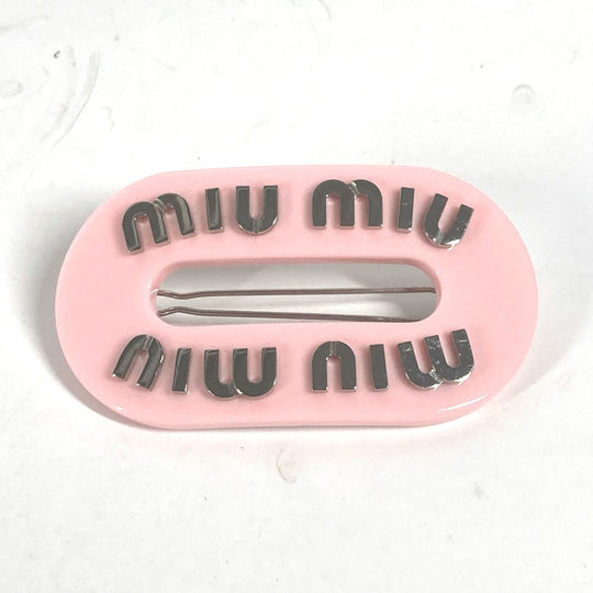 MIUMIU Valletta plastic pink hairpin logo rhinestone Women Used Authentic