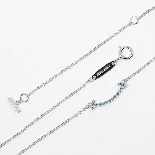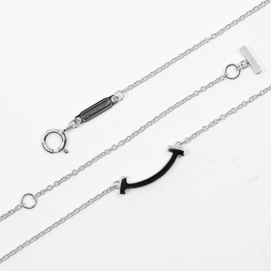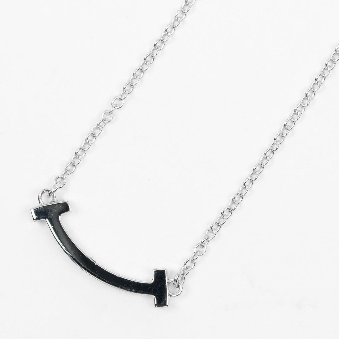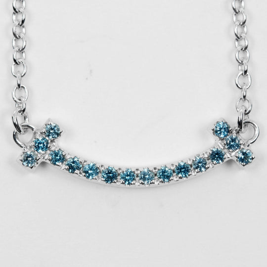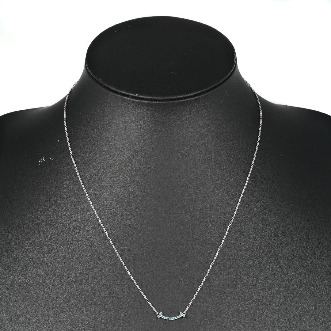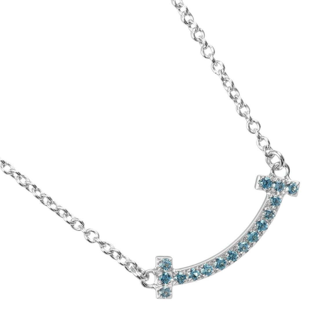 TIFFANY&Co. Necklace K18 White Gold, Blue Topaz Silver T Smile Mini Women Used Authentic