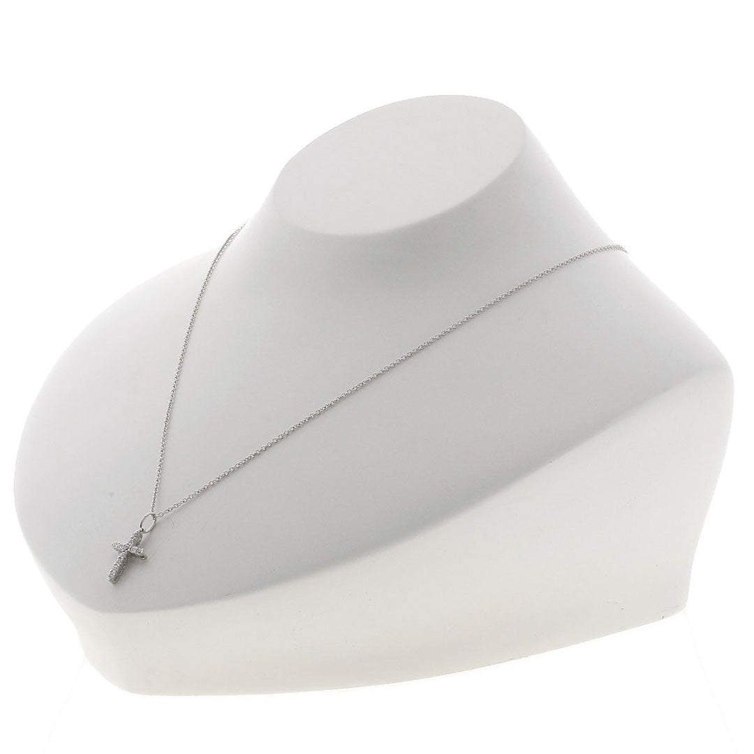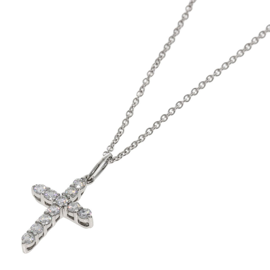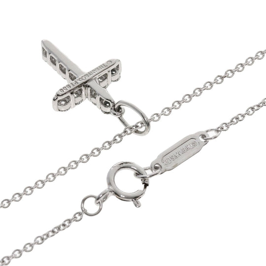 TIFFANY&Co. Necklace K18WG , PT950 Silver Small cross diamond Women Used Authentic