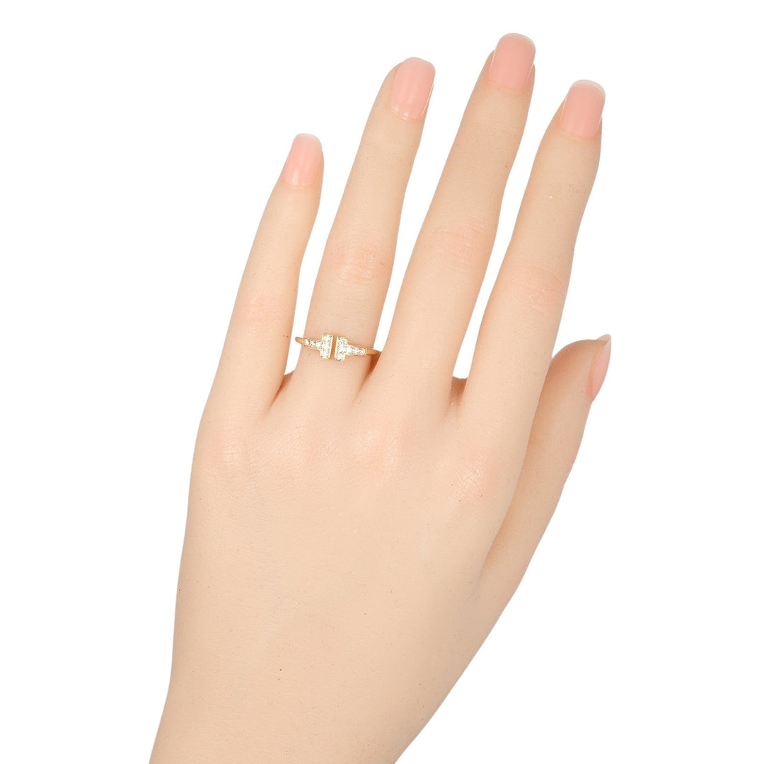 TIFFANY&Co. Ring K18 pink gold, diamond gold T wire Women Used Authentic