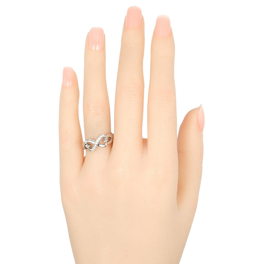 TIFFANY&Co. Ring K18 White Gold, Diamond gold Double Loving Heart Women Used Authentic