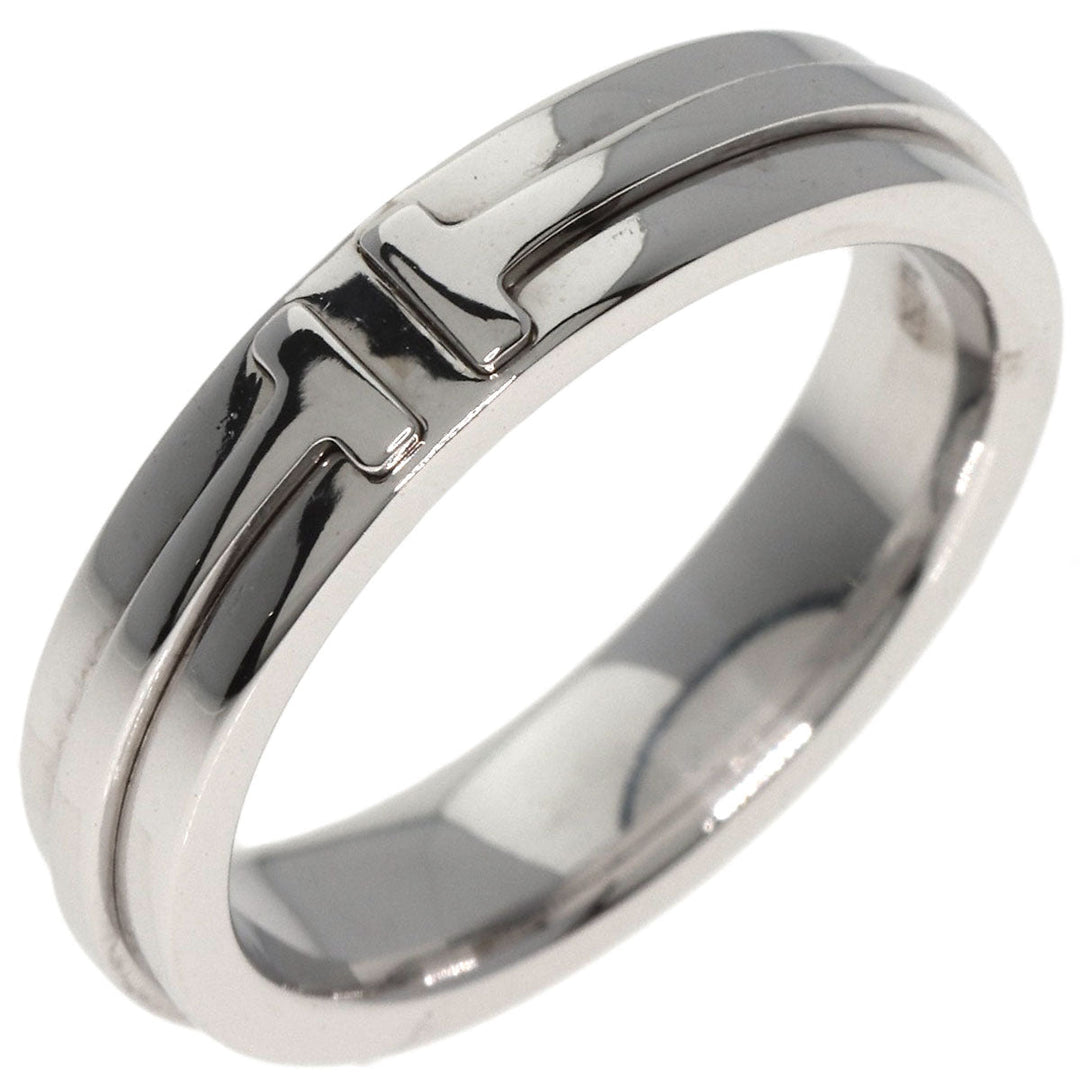 TIFFANY&Co. Ring K18WG Silver T TWO narrow Women Used Authentic
