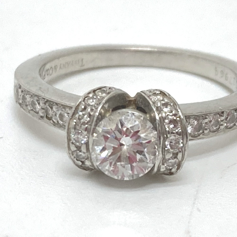 TIFFANY&Co. Ring Pt950 Silver Pt950 Ribbon Diamond Women 11�† Used Authentic