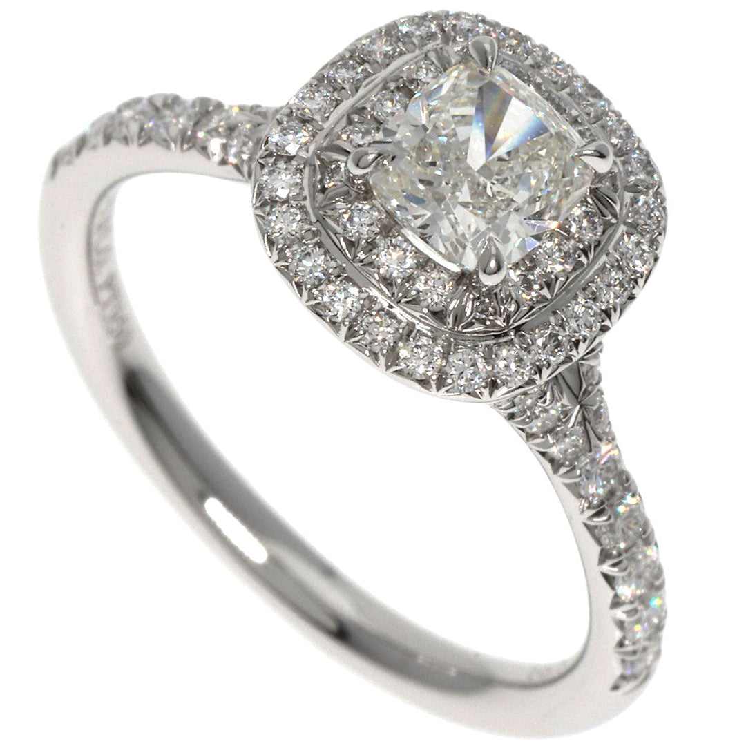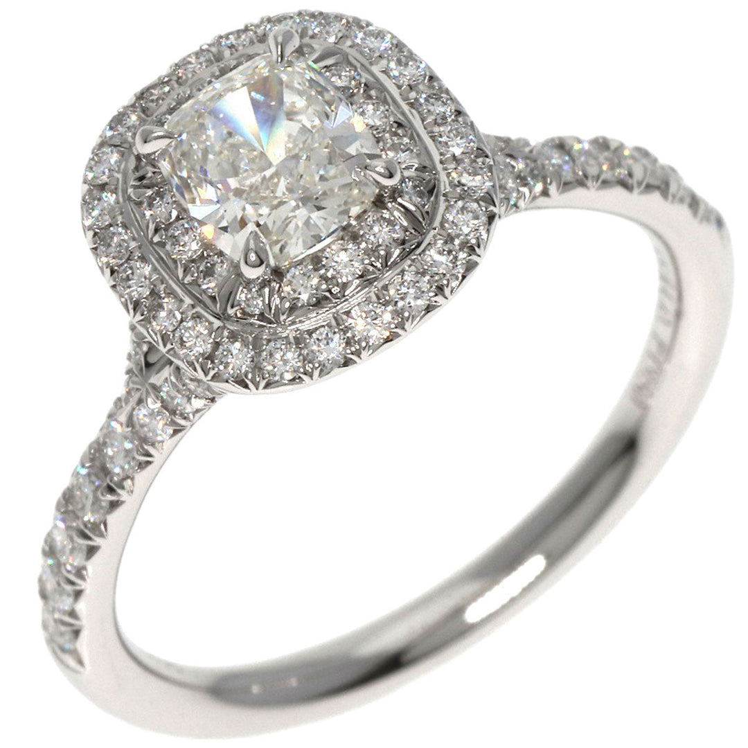 TIFFANY&Co. Ring PT950 Silver Solest cushion cut engagement diamond Women Used Authentic