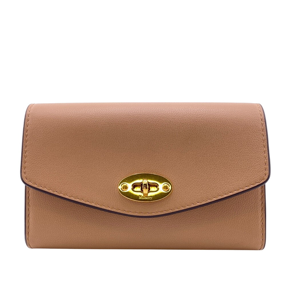 MULBERRY Bifold Wallet leather beige Darly Wallet Turn Lock medium Women Used Authentic