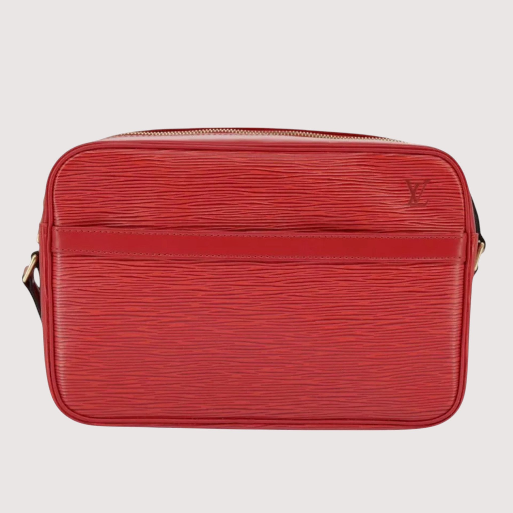 Condition - Surface rubbing, out of shape, and slightly stained. Rubbing and partly stained on shoulder strap. Slight scratches on metal fittings. Slight stain and rubbing on inside. Rubbing on pocket and corner. Storage smell.