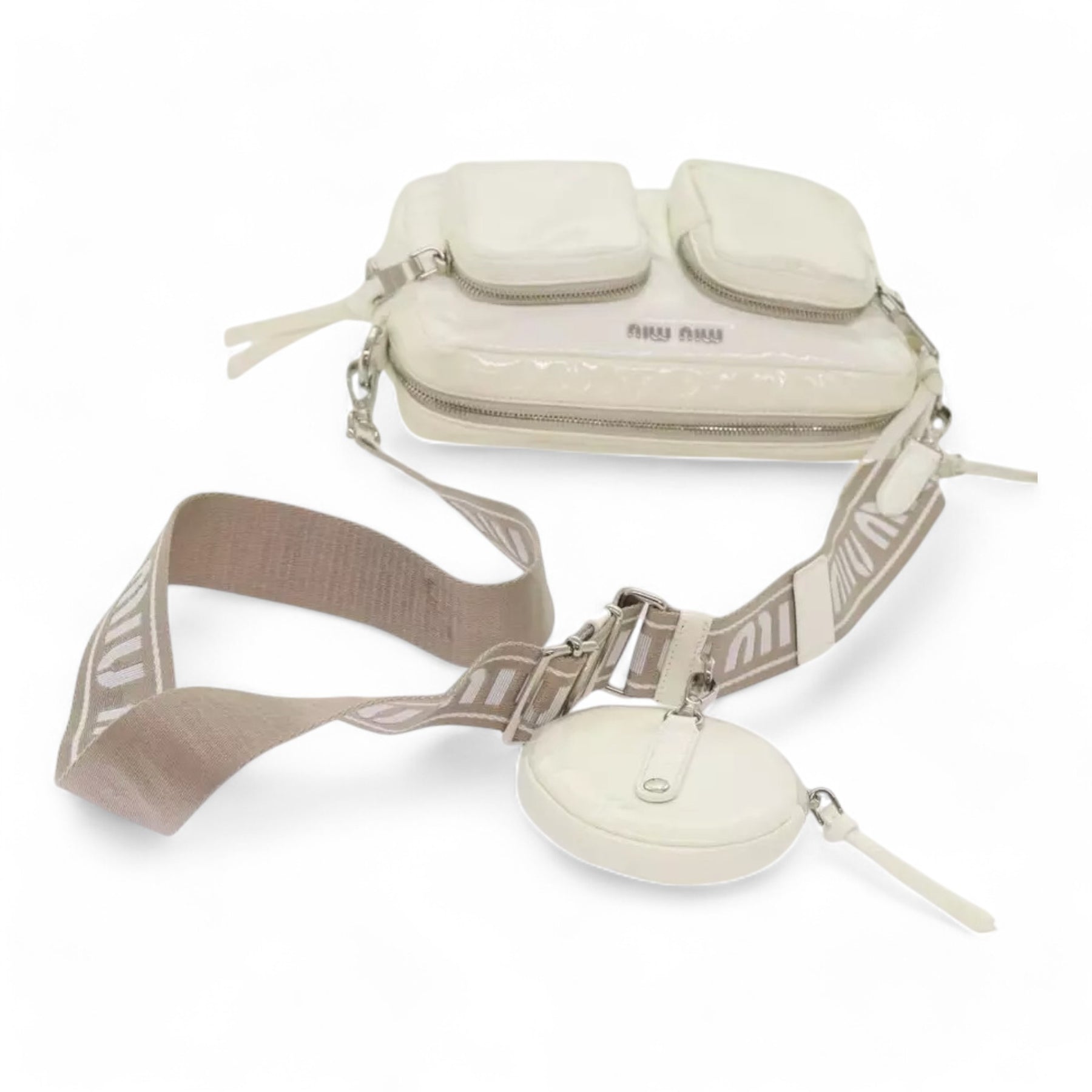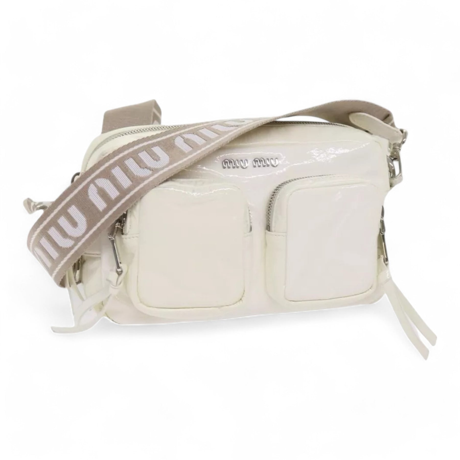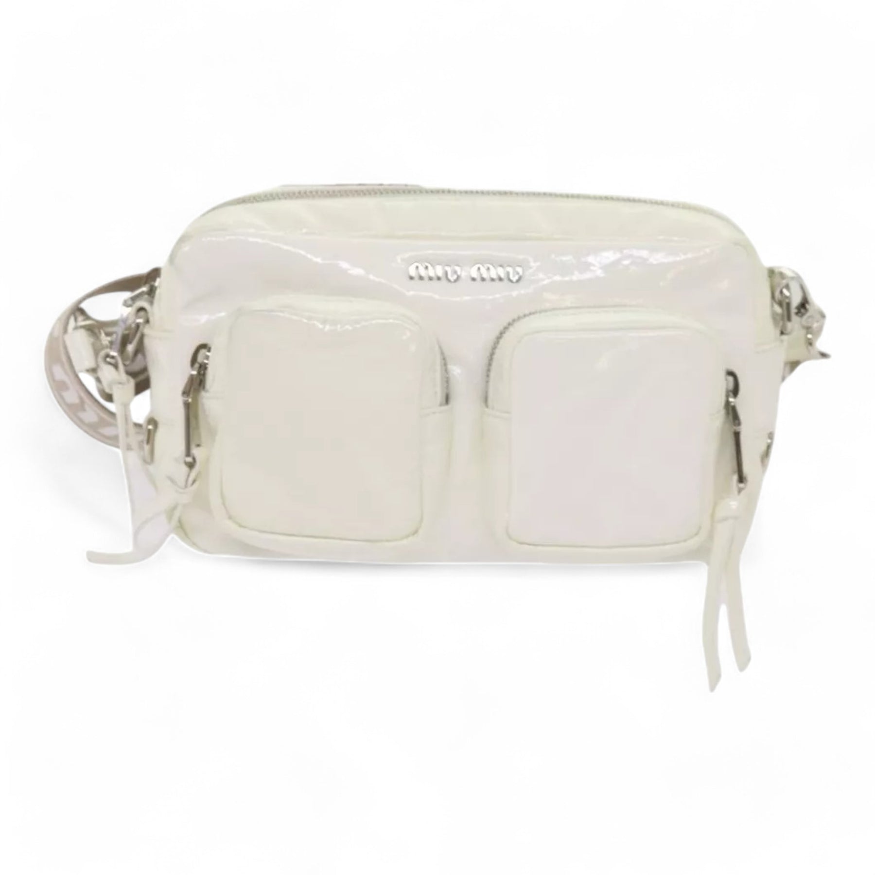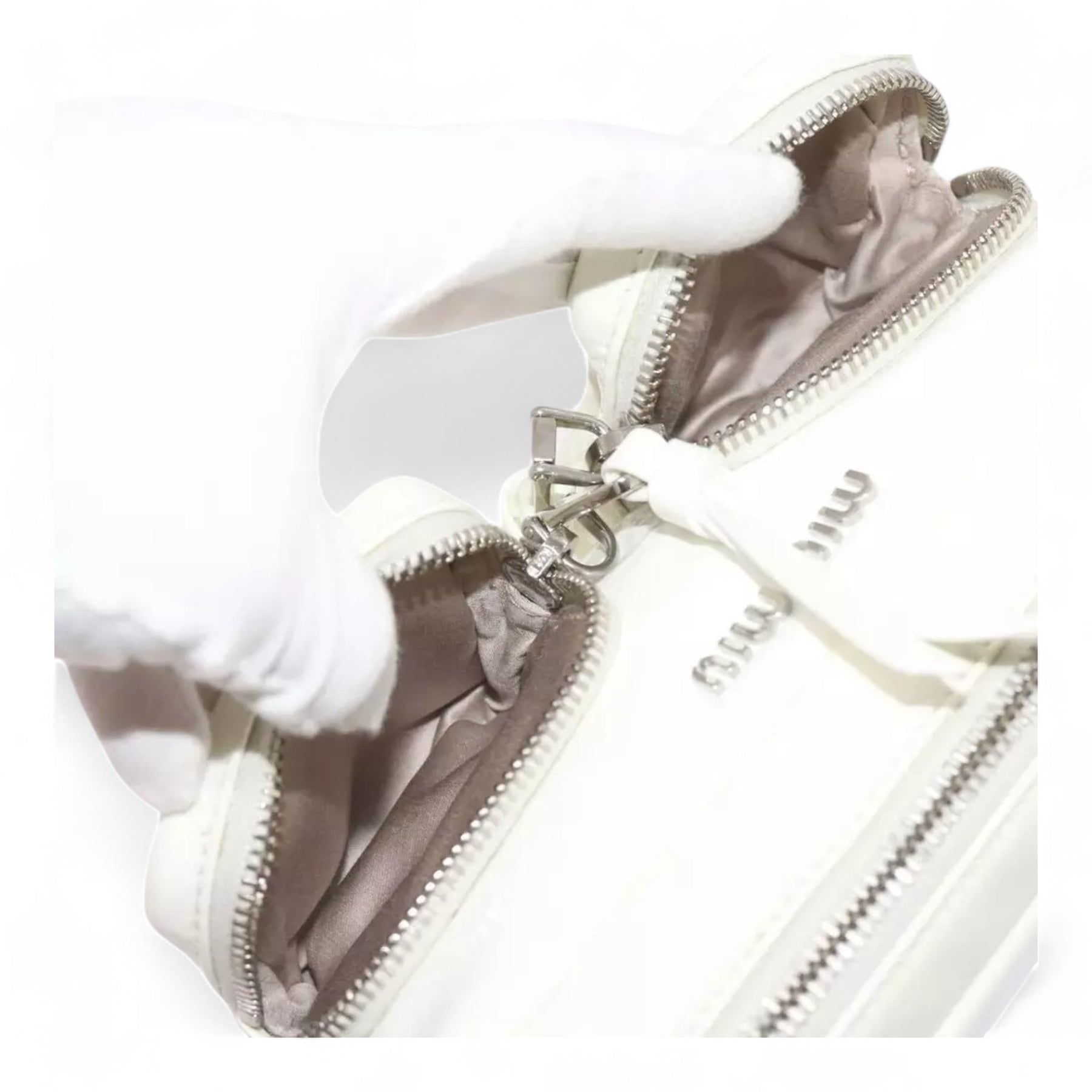 Miu Miu Shoulder Bag Enamel White Women Crossbody Purse with Strap and Pouch