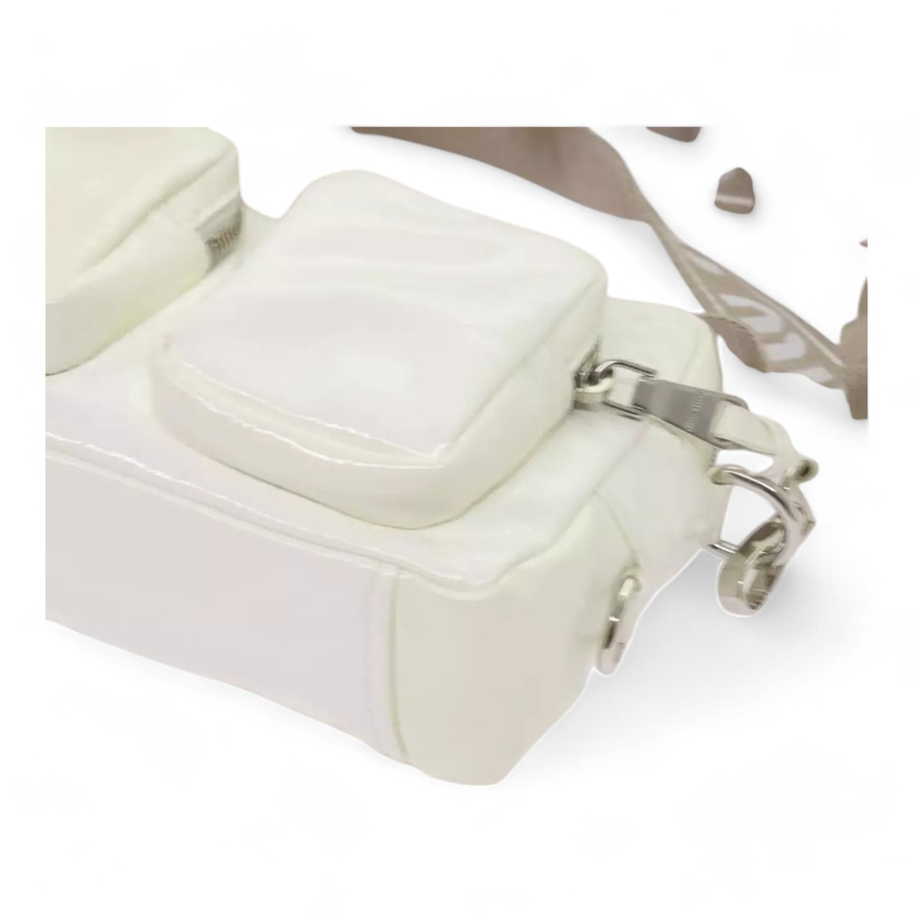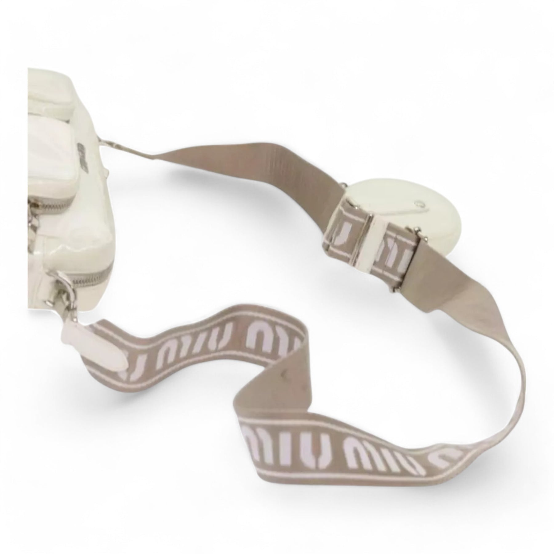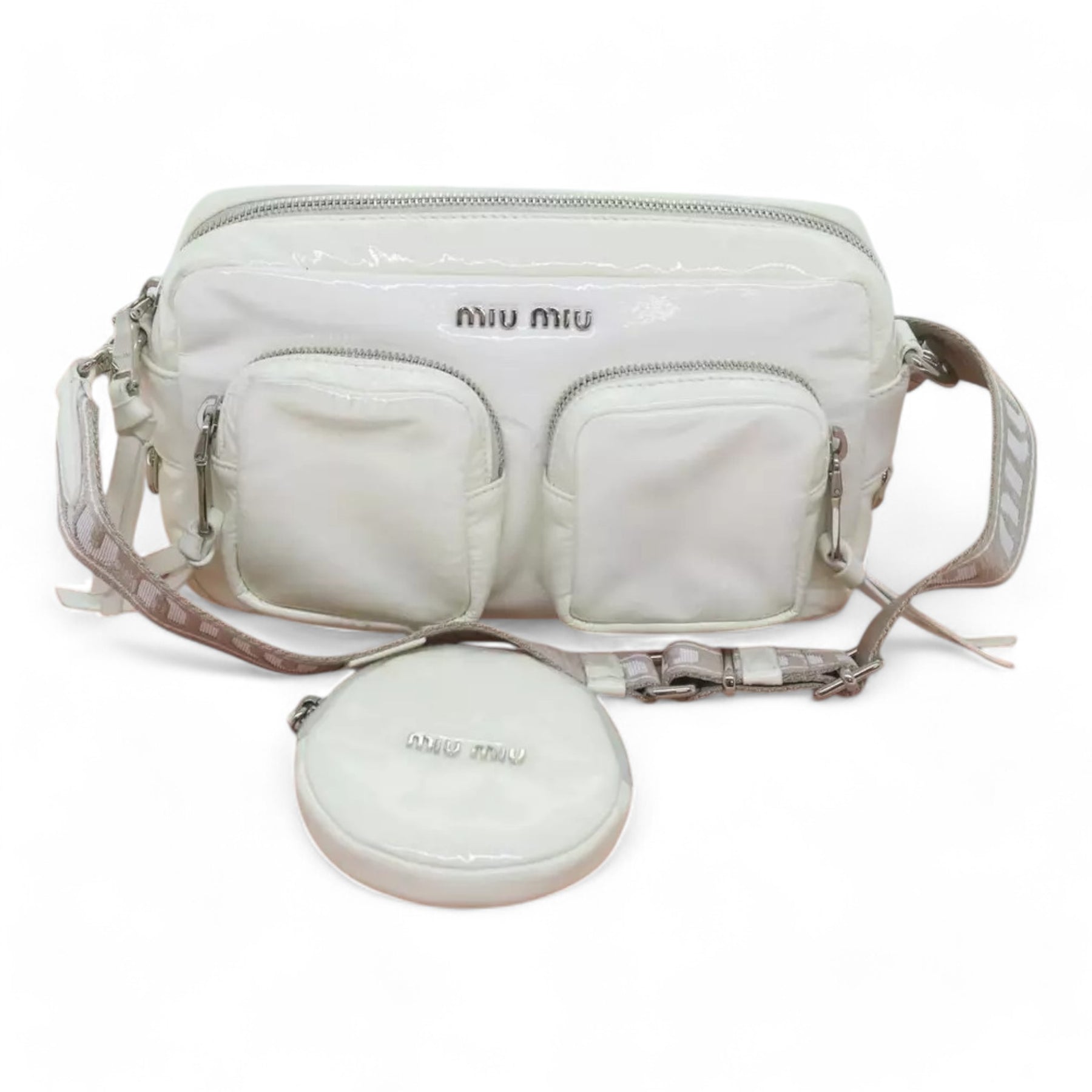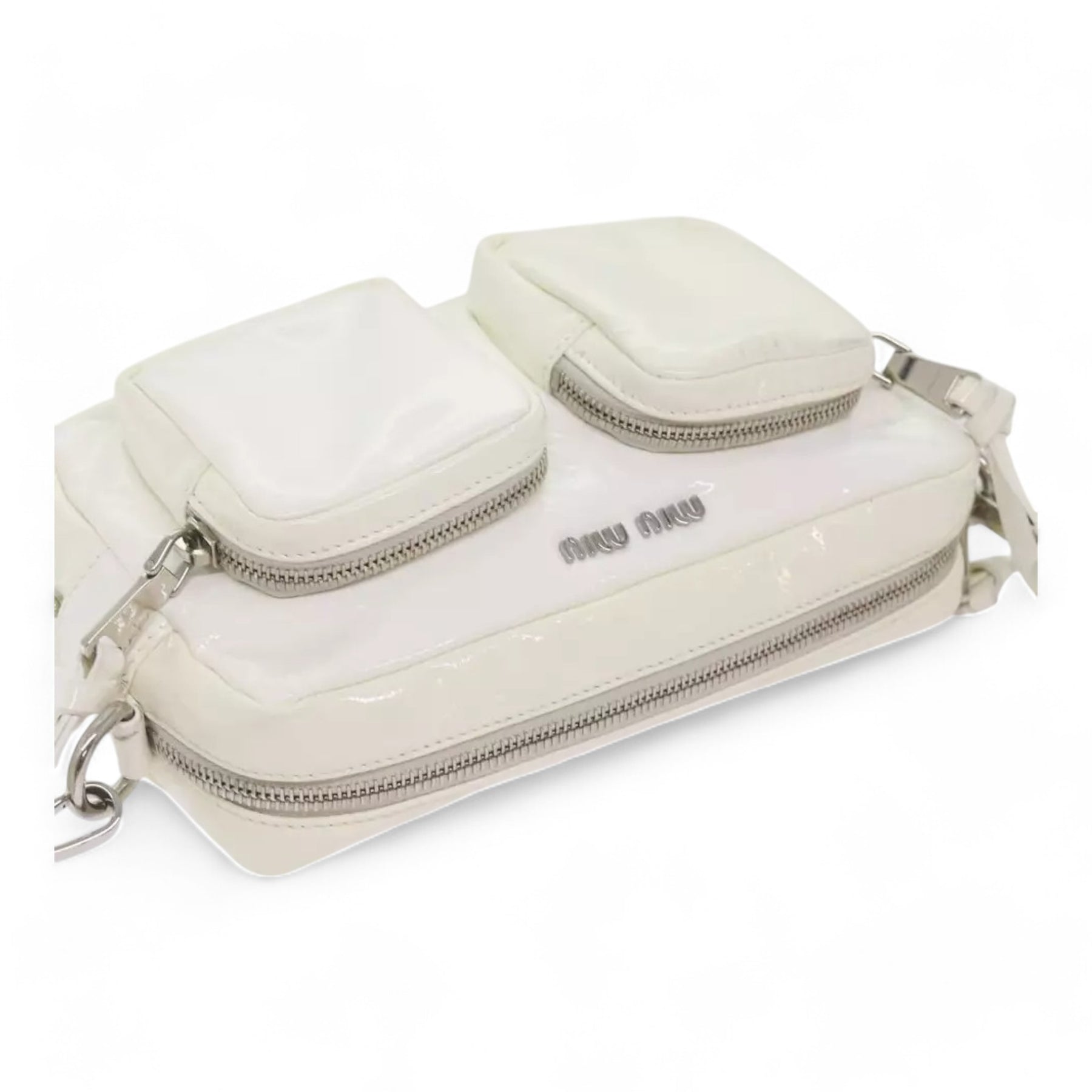 Miu Miu Shoulder Bag Enamel White Women Crossbody Purse with Strap and Pouch