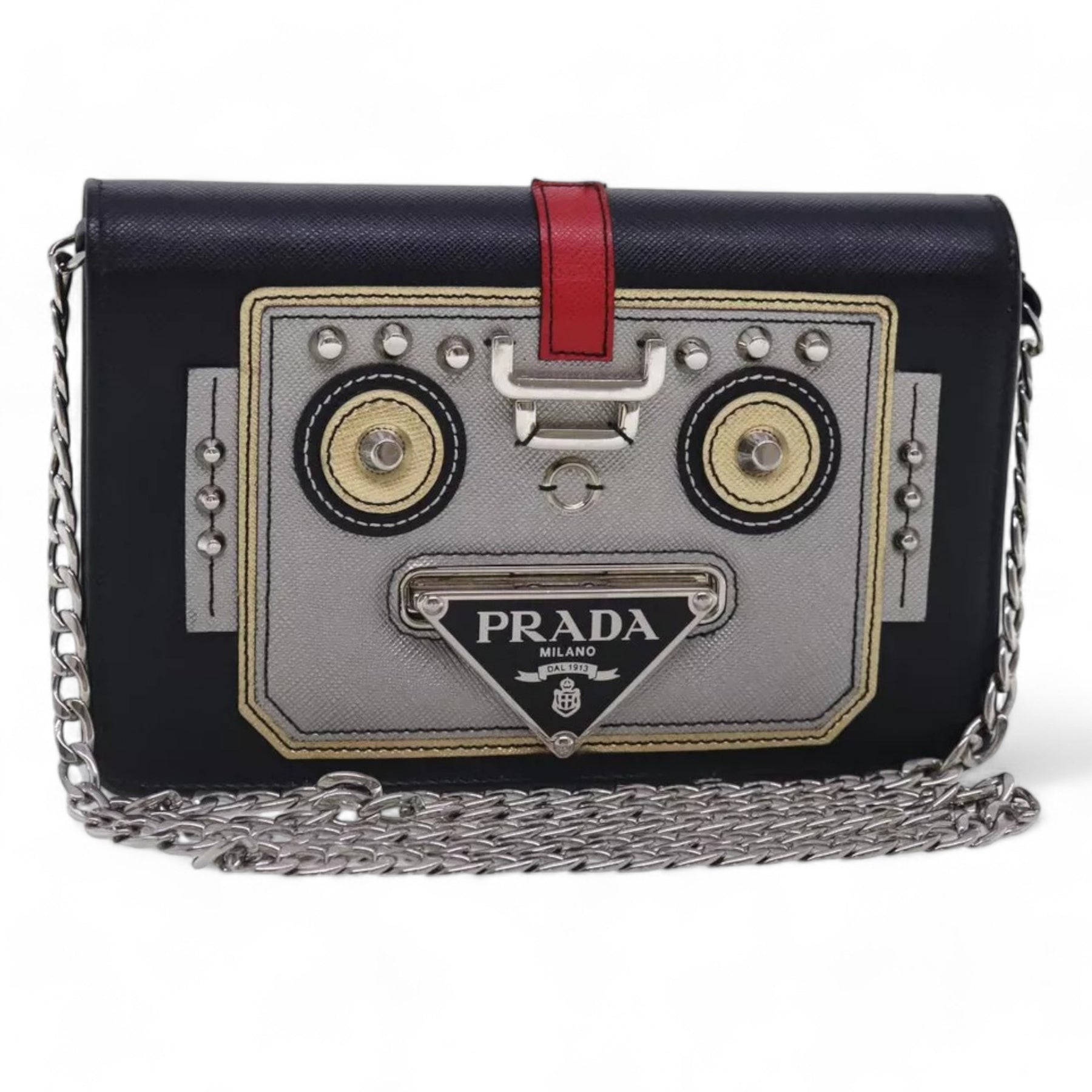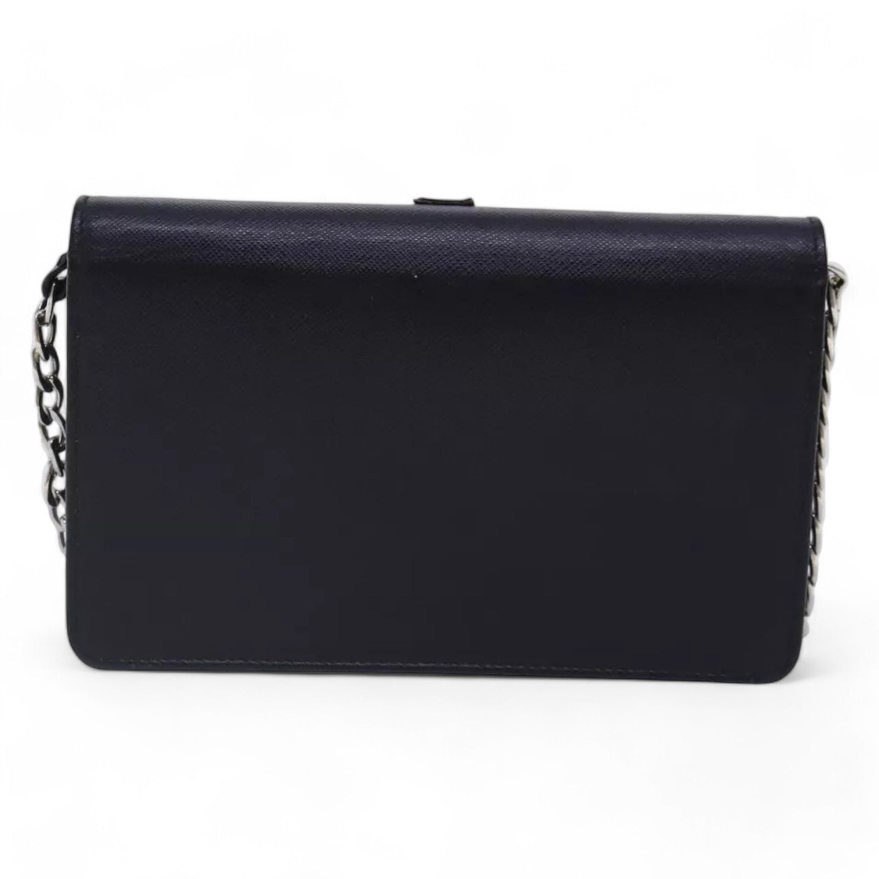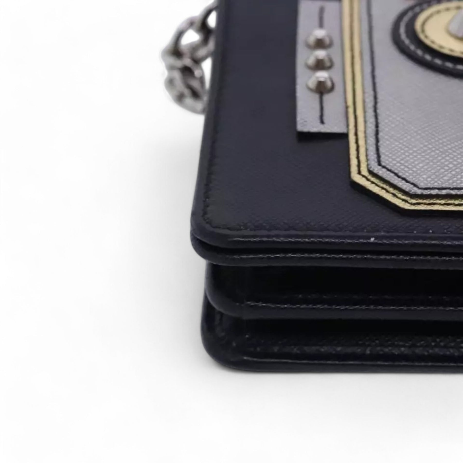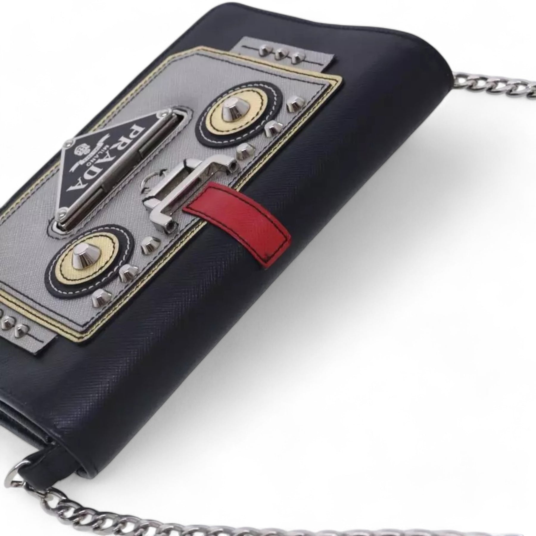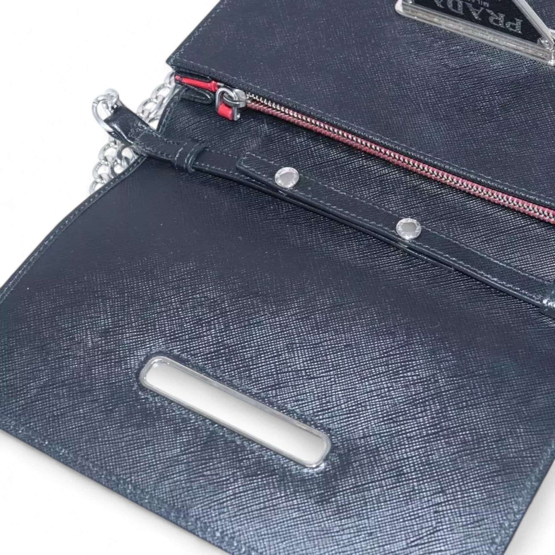 Prada Chain Shoulder Bag Saffiano Leather Black Silver Women