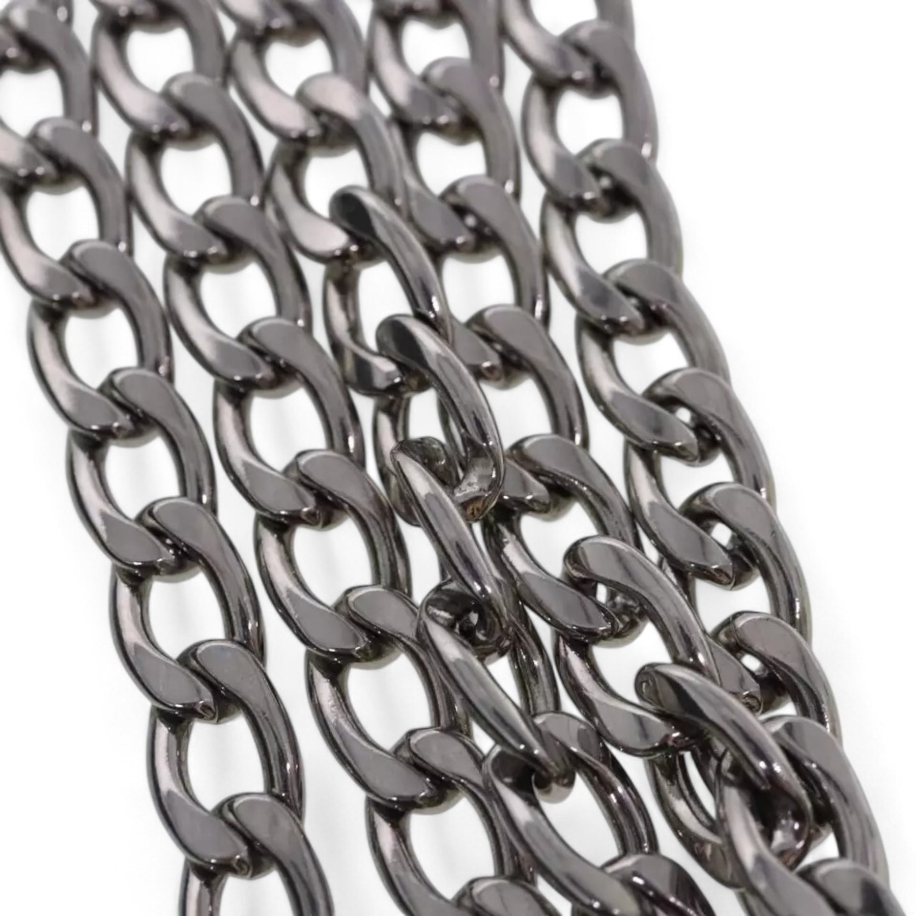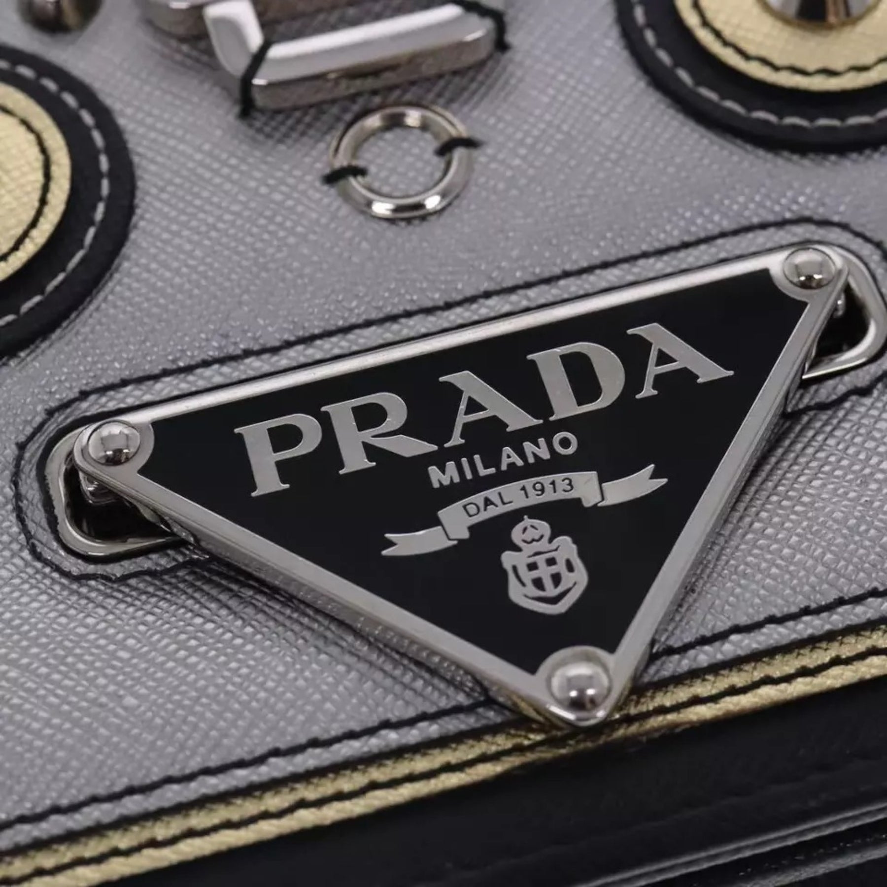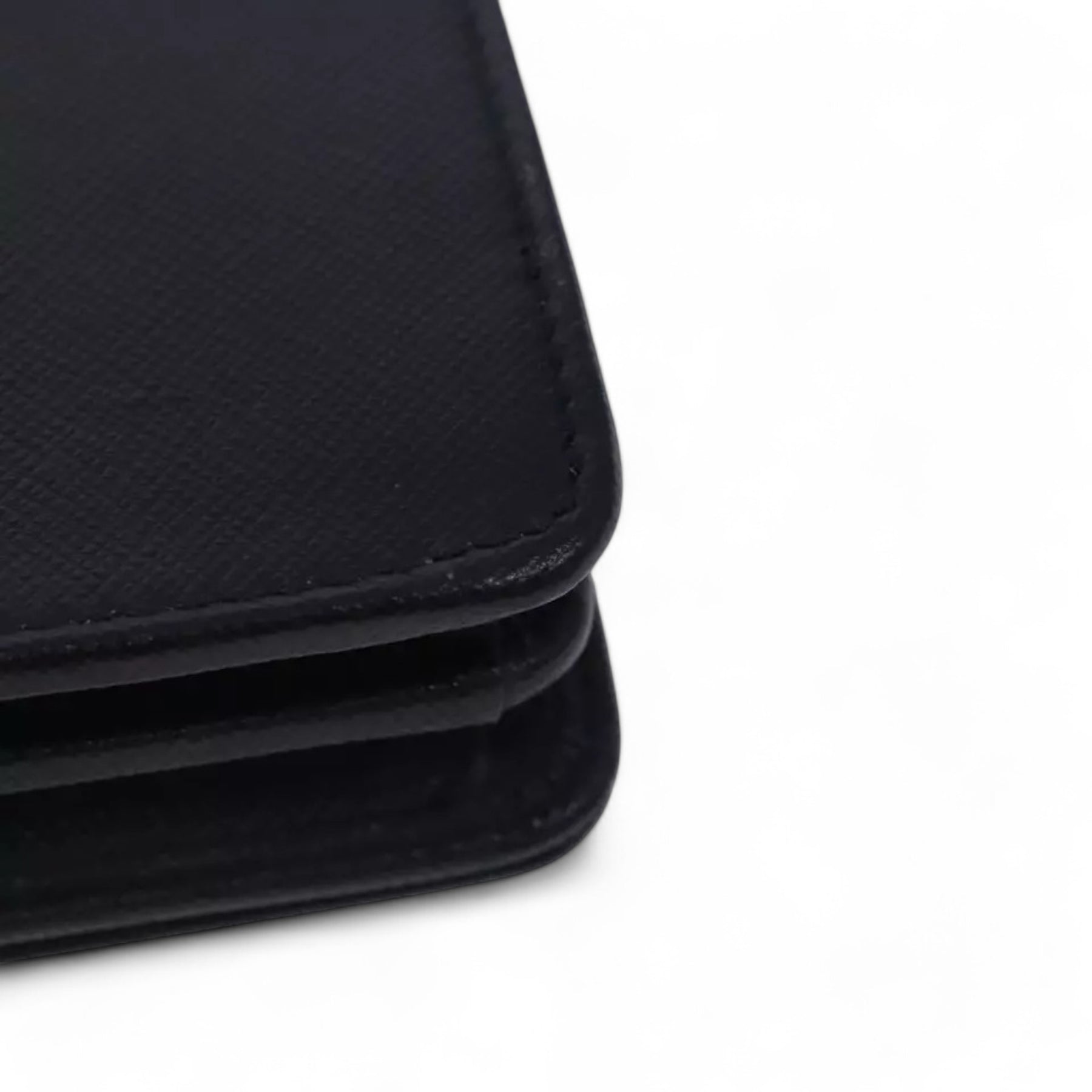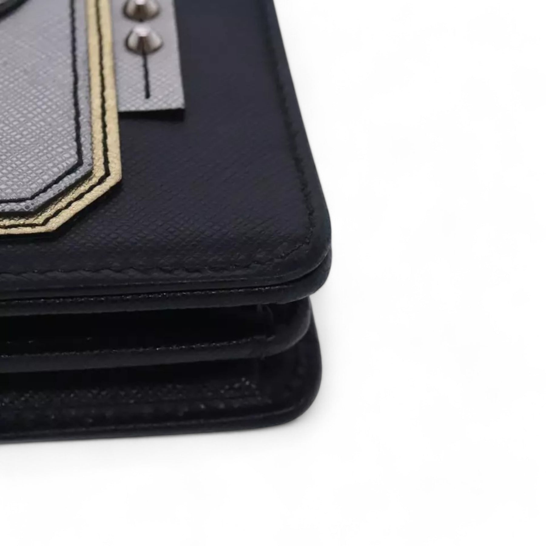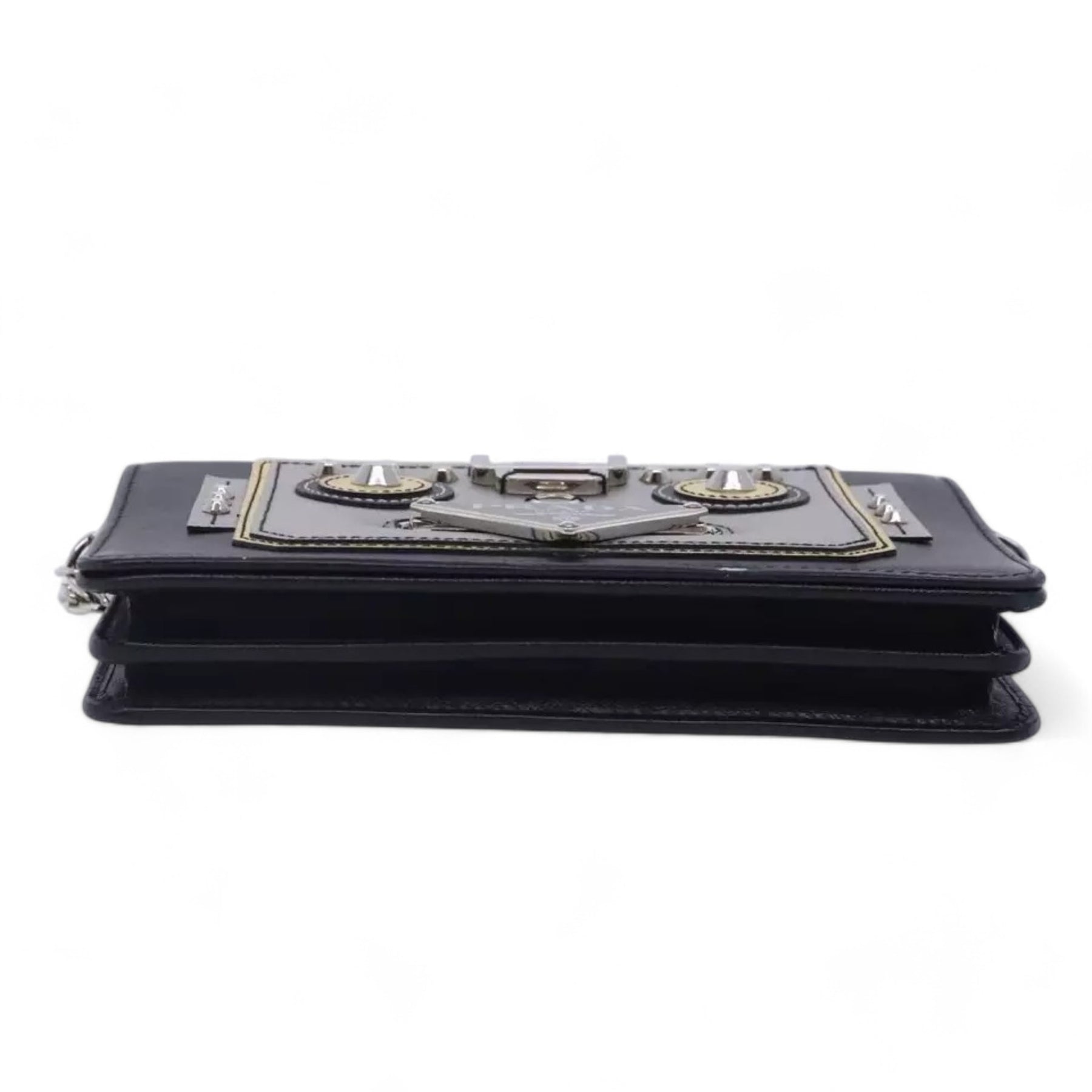 Prada Chain Shoulder Bag Saffiano Leather Black Silver Women