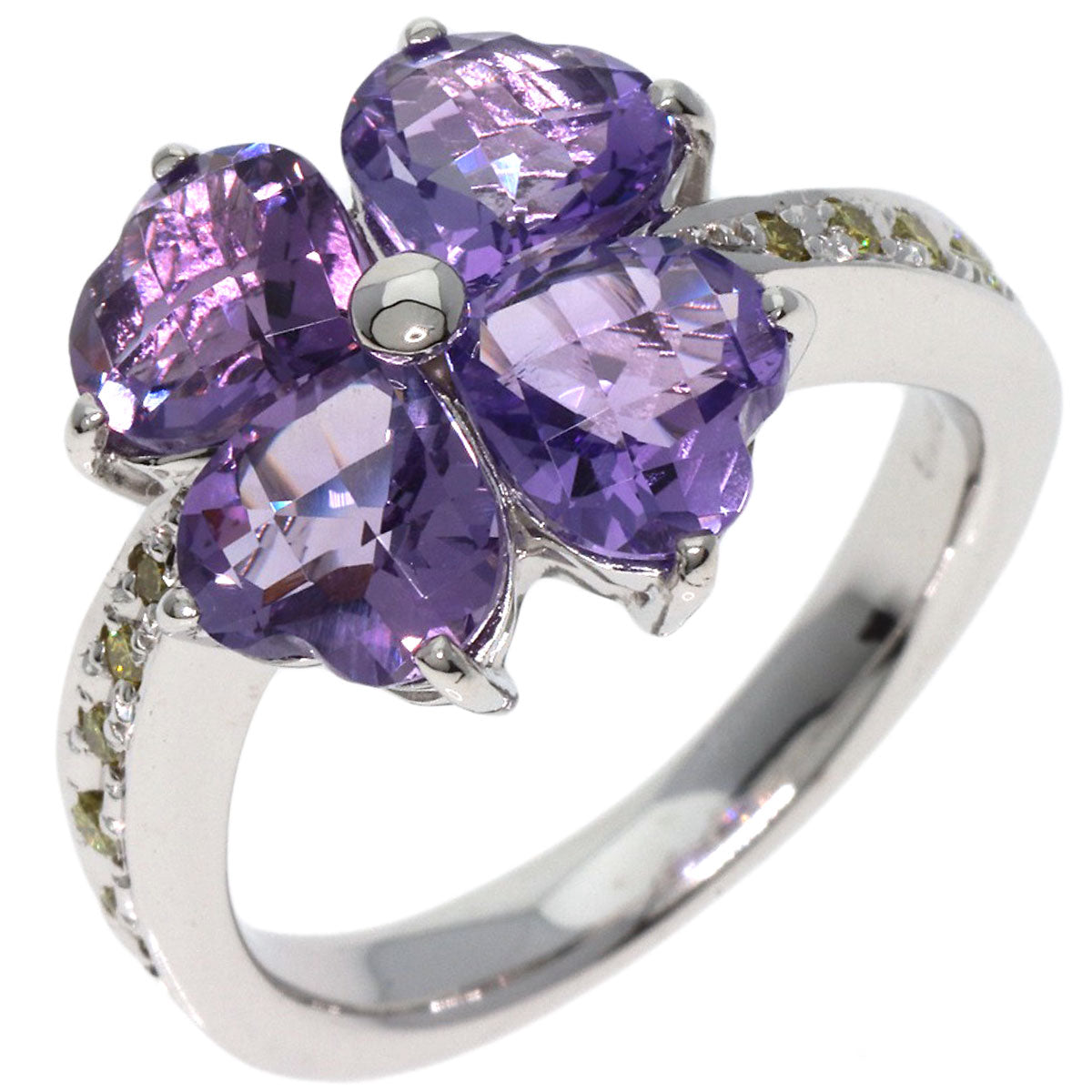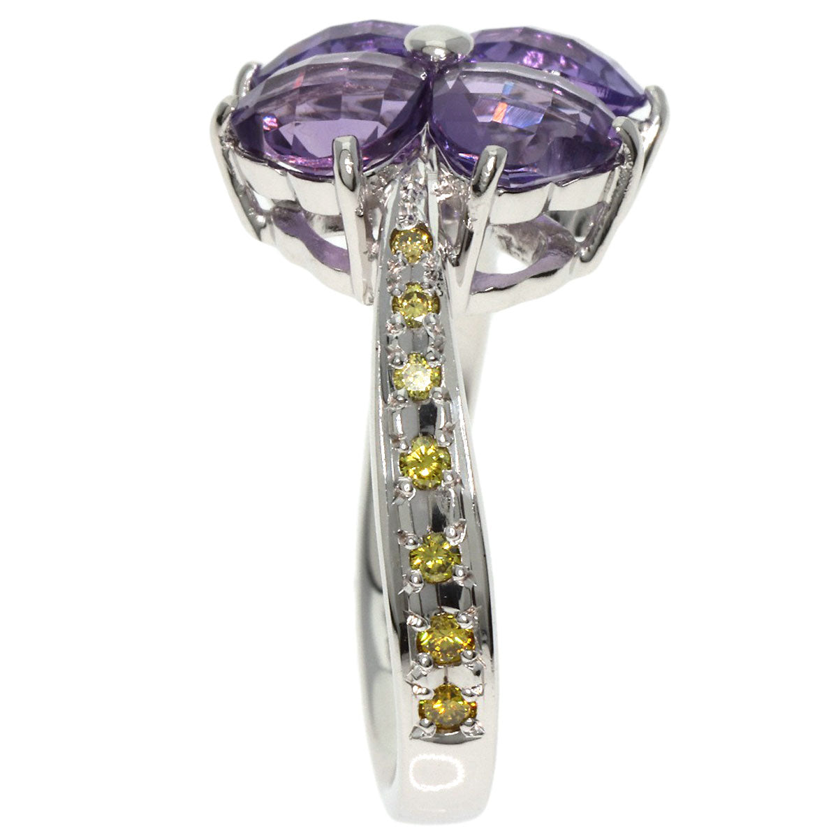 4℃ Ring K18WG Silver Amethyst diamond Women Used Authentic