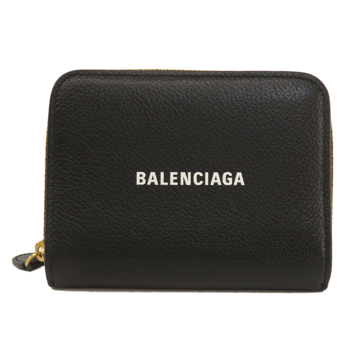 BALENCIAGA Bifold Wallet 650871 leather black logo Women(Unisex) Used Authentic