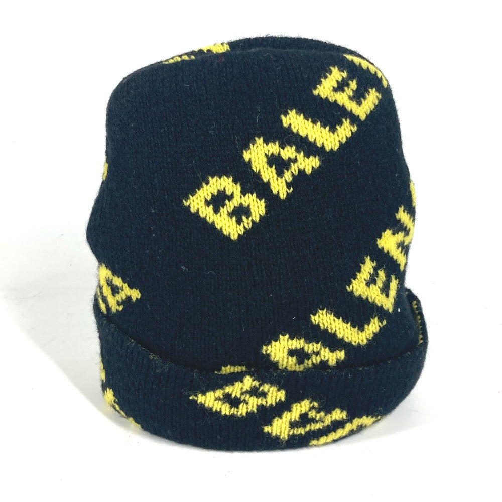 BALENCIAGA Knit hat 555282 wool black Logo all-over pattern mens Used Authentic