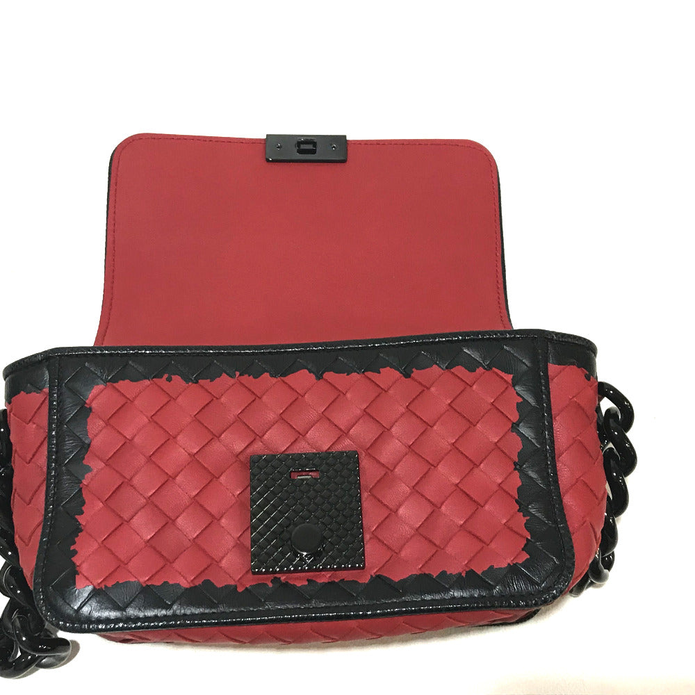BOTTEGAVENETA Shoulder Bag 339270 lambskin Red x black INTRECCIATO Mini Chain Women Used Authentic