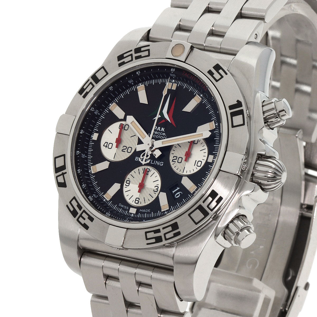 BREITLING Watches Mechanical Automatic AB0110 Stainless Steel , Stainless Steel Silver Chronomat 44 Fretze Tricolori Limited to 1000 pieces worldwide black dial mens Used Authentic