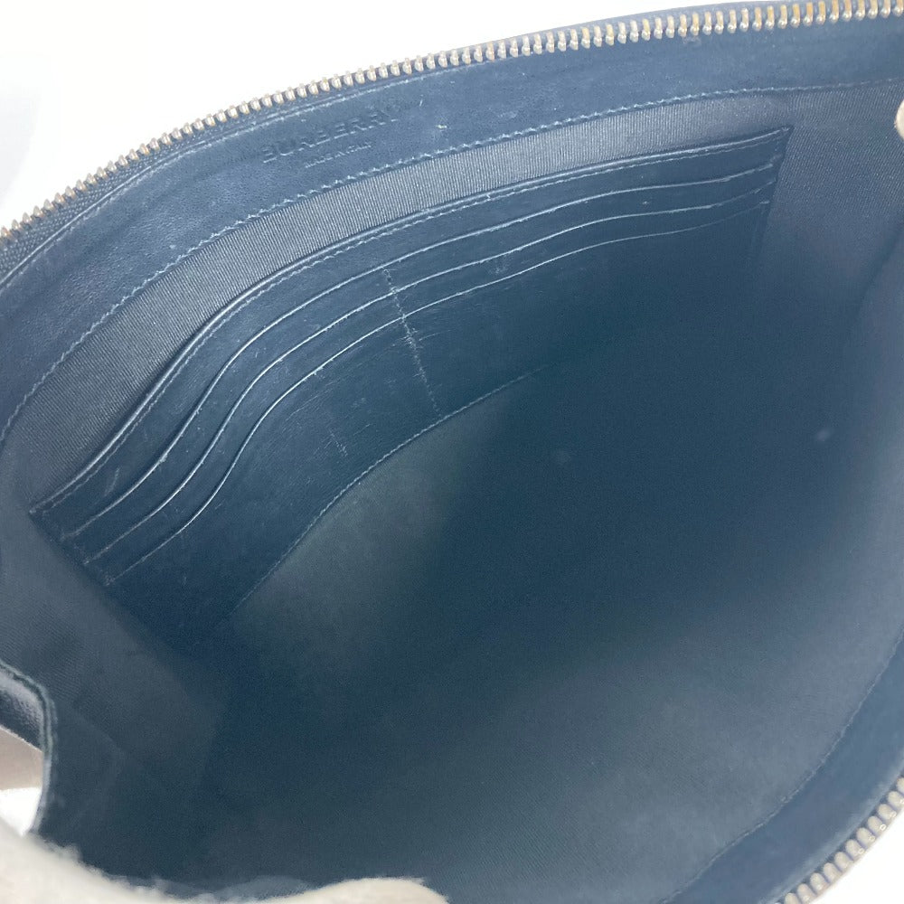 BURBERRY Clutch bag leather black TB logo mens Used Authentic