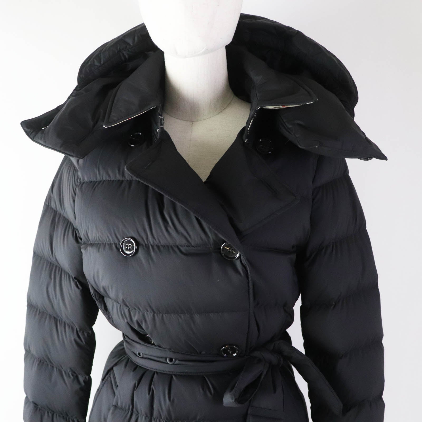 BURBERRY down coat 8044680 Outer material: 100% nylon, Lining: 100% nylon, Filling: 90% down, Filling: 10% feather, Upper lining: 100% polyester, Collar back: 100% polyester, Leather part: 100% cowhide black Women S Used Authentic