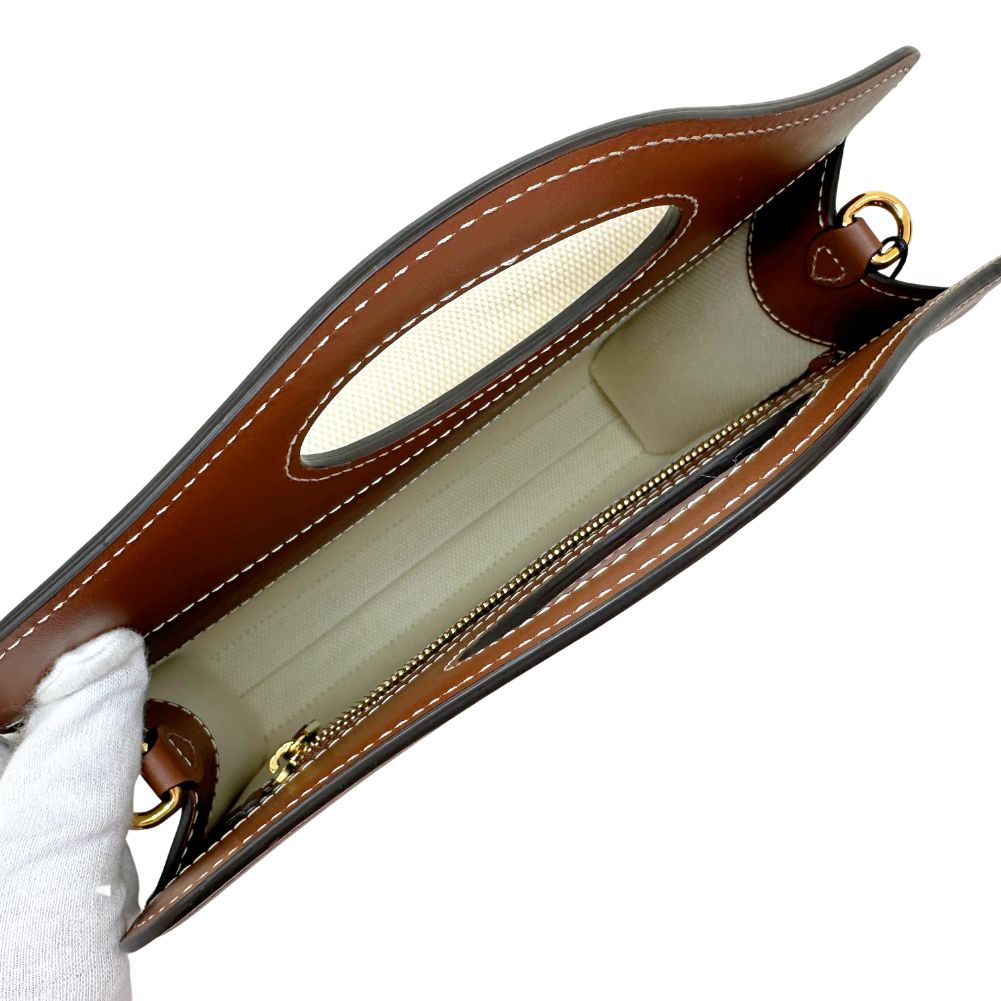 BURBERRY Handbag Canvas, Calfskin Brown white 2WAYShoulder Pocket bag Women Secondhand Authentic