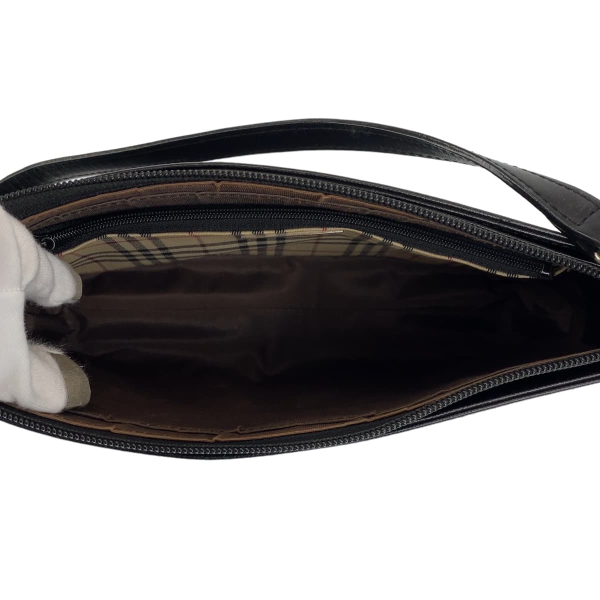 BURBERRY Handbag leather Black Silver Metal Handbags, Accessory Pouches, Shoulder Bags Medium Check Pattern Women Used Authentic