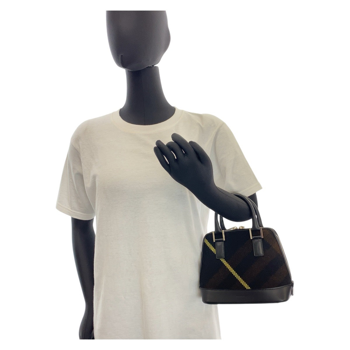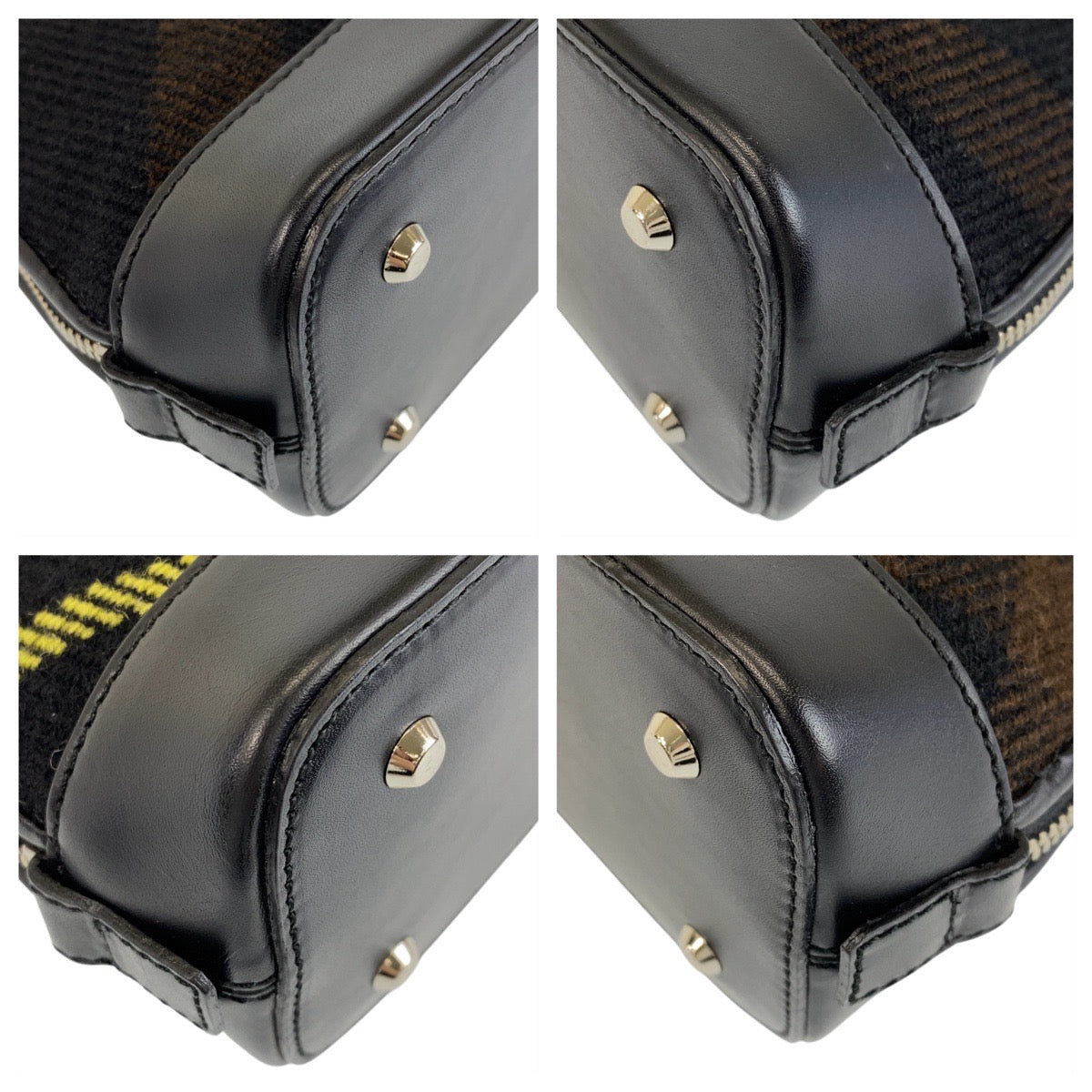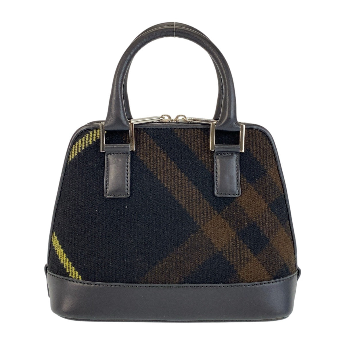 BURBERRY Handbag Wool, Leather Black SilverMetal Handbag Check Pattern Women Used Authentic