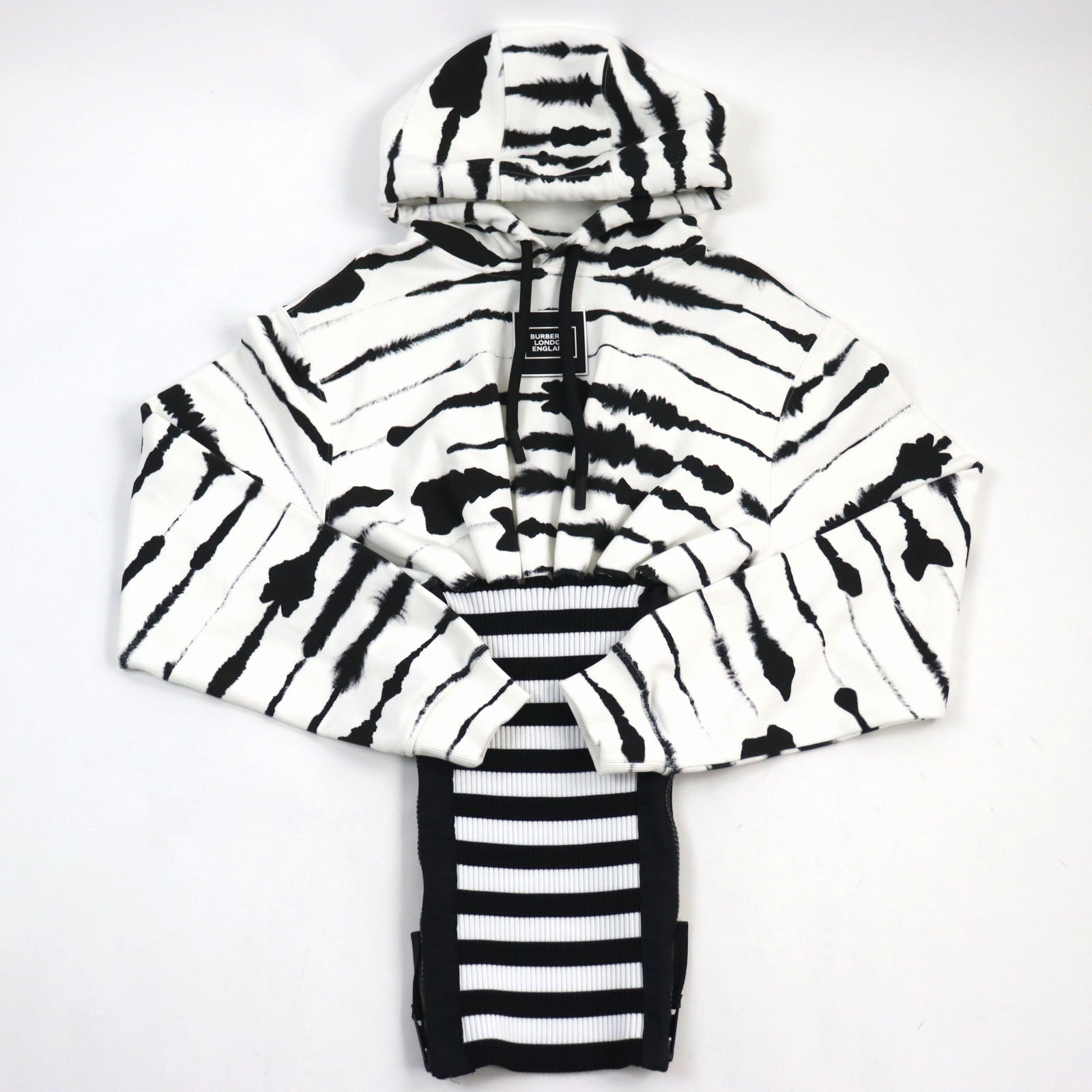 BURBERRY Hoodie 4563724 Outer material: 100% cotton, Outer material: 77% polyester, Outer material: 15% polyamide (nylon), Outer material: 8% elastane (polyurethane) White black Watercolour Print Reconstructed Hoodie mens XS Used Authentic